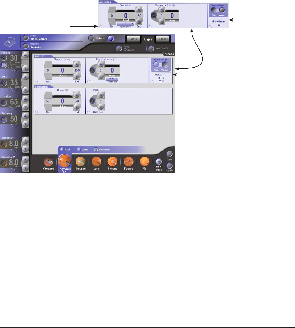momentary mode). Micro and proportional reflux are available via the footswitch.