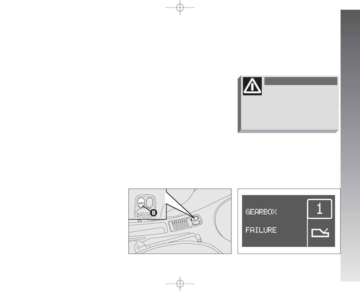 Petrol engine with Selespeed transmission: keep the brake pedal fully depressed, turn the ignition key to