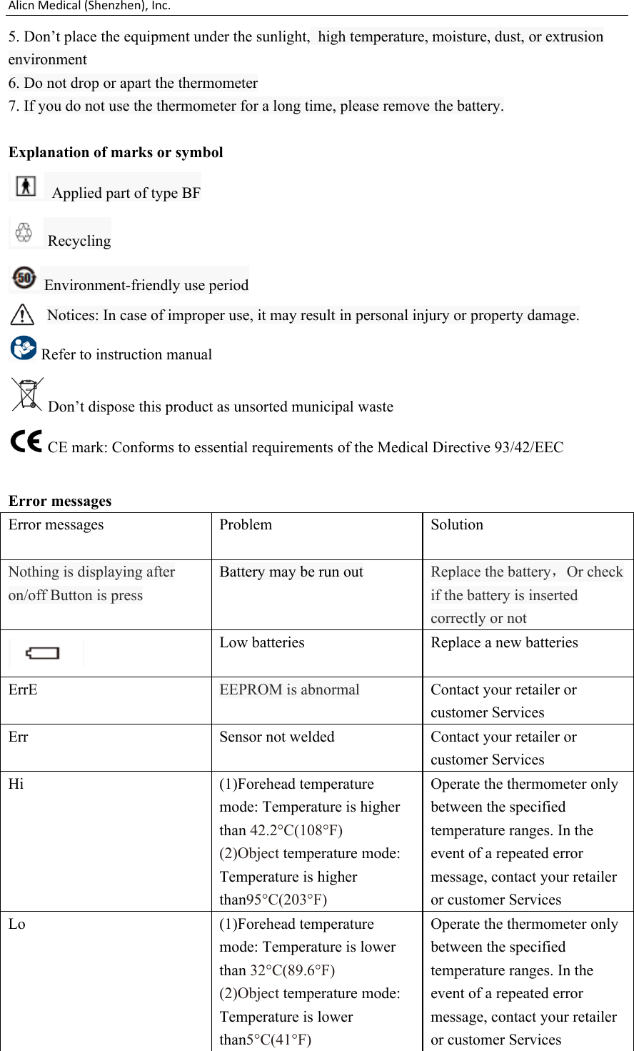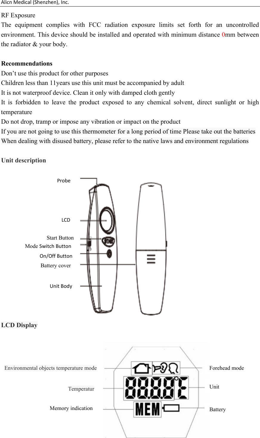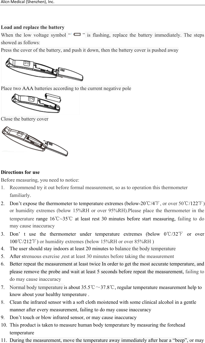 Alicn Medical (Shenzhen), Inc. Non-contact infrared thermometer