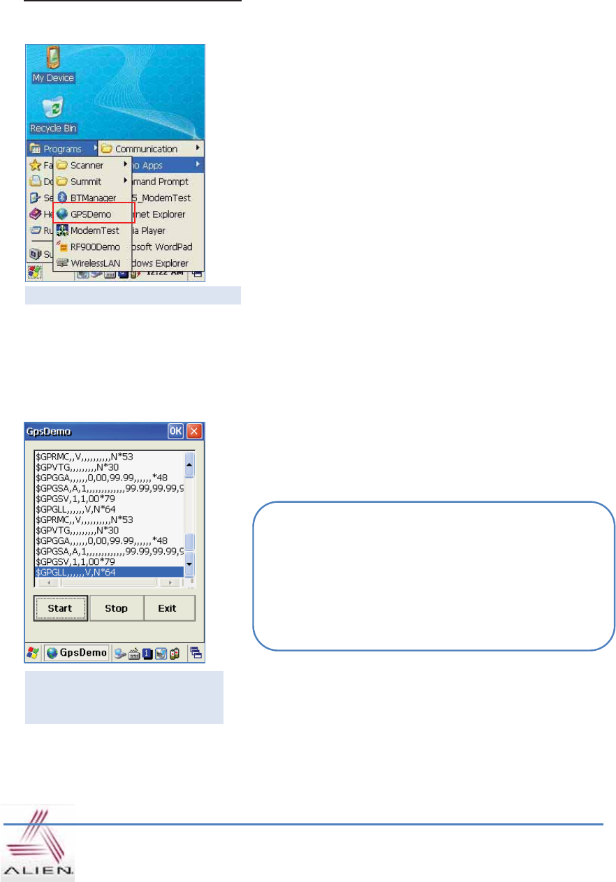 [Start Button] -> [Program] -> [DEMO Apps] ->[GPS-Demo]