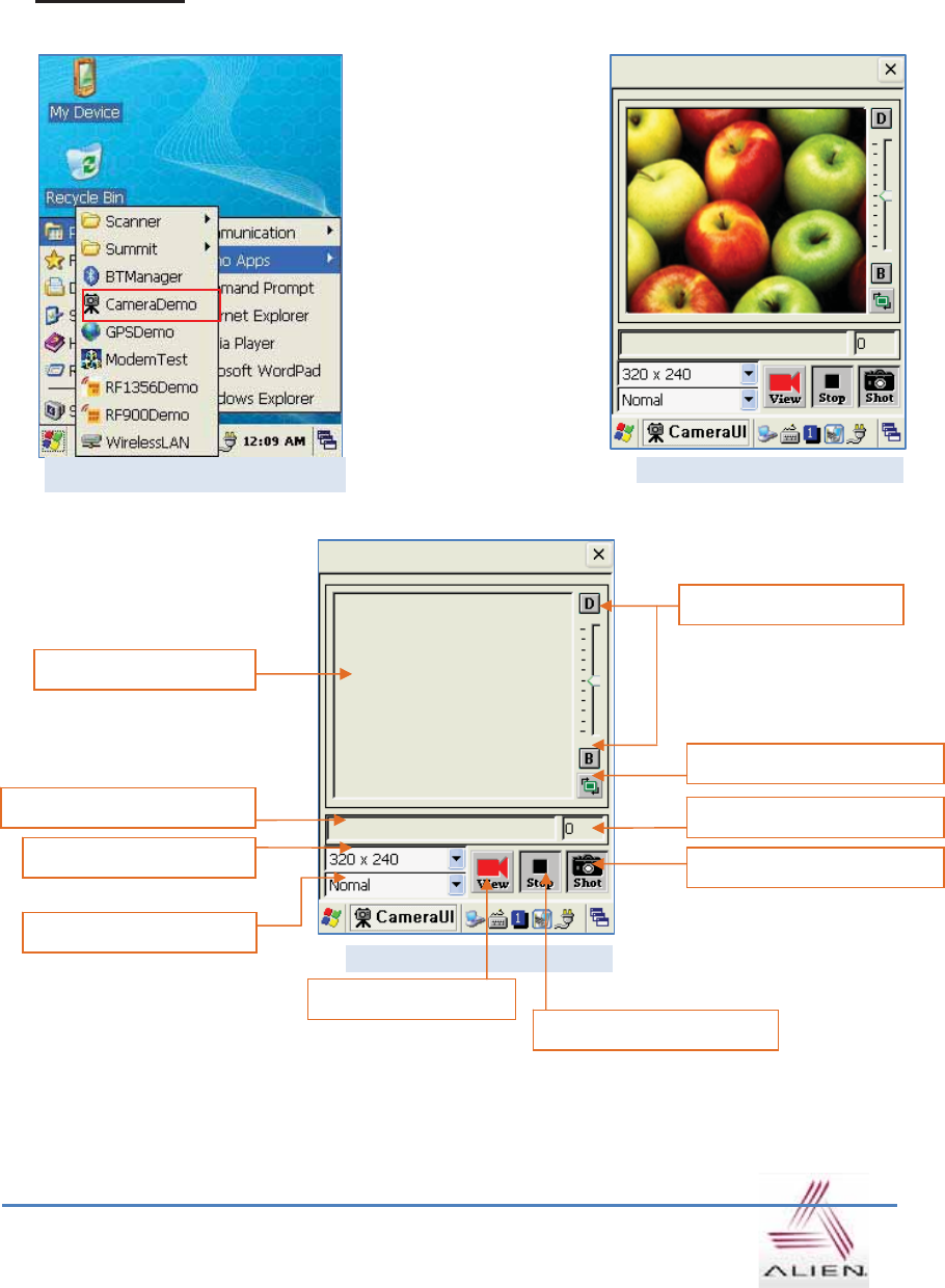 [Start Button] -> [Program] -> [DEMO Apps] -> [CameraDemo]