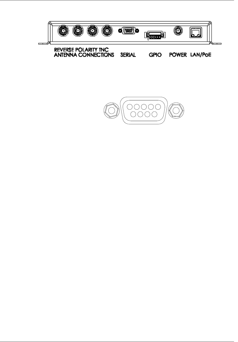 via RS-232, align and connect a DB-9 serial cable to the reader's RS-232