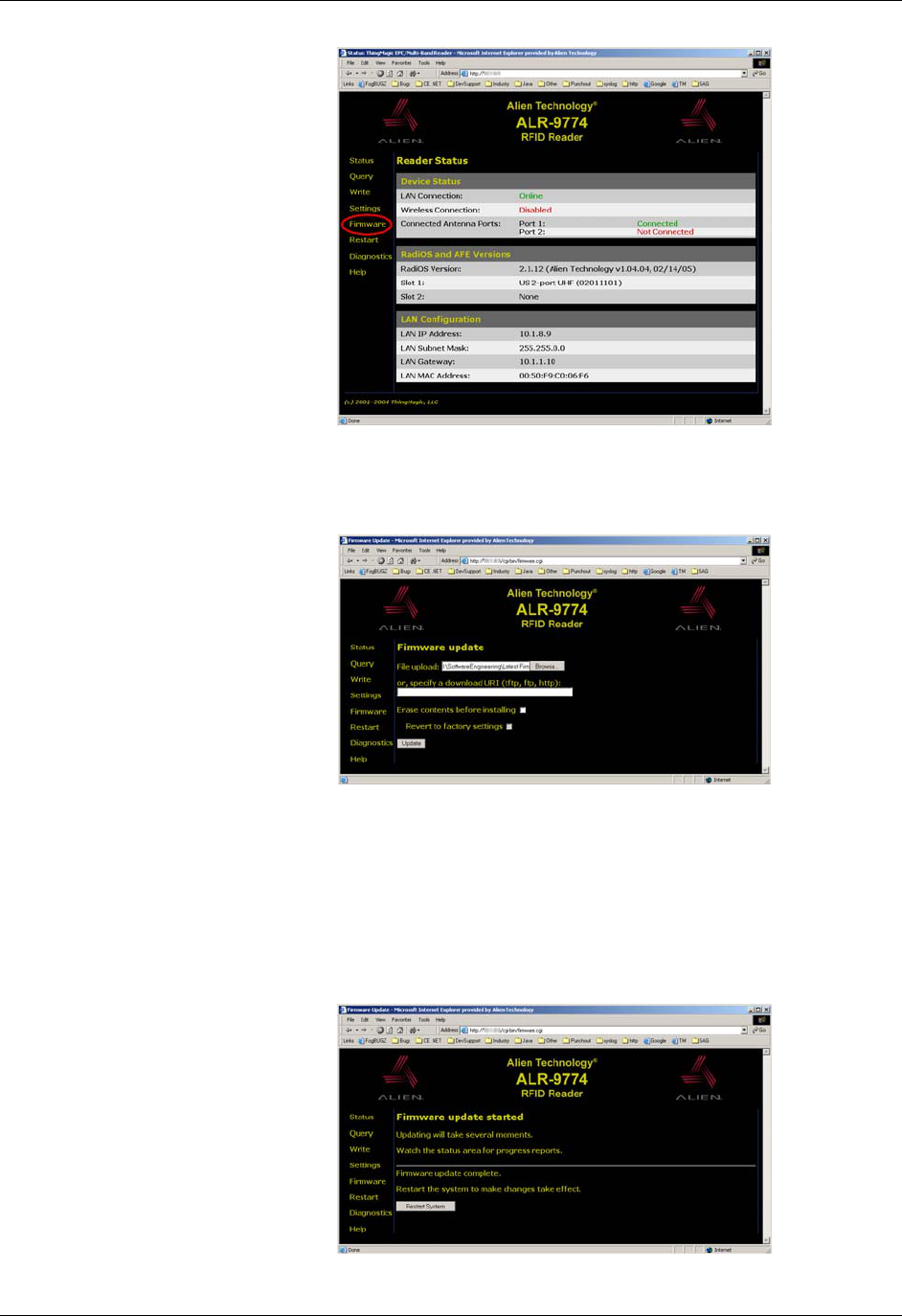 To upload new firmware to the ALR-9770, simply browse to the reader's web
