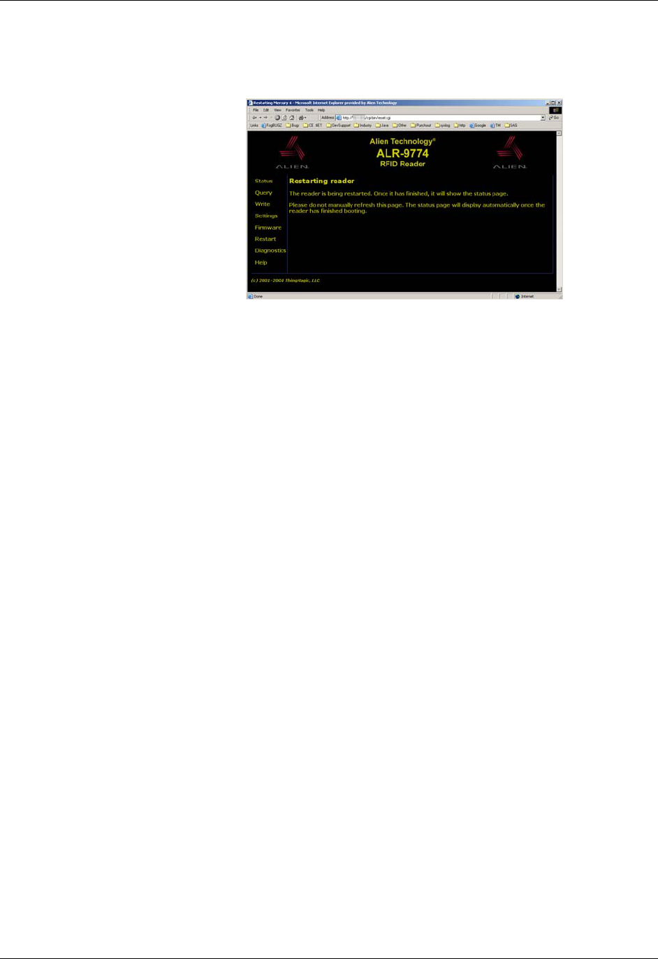 After the reader restarts, the web interface attempts to reload the Status page. If