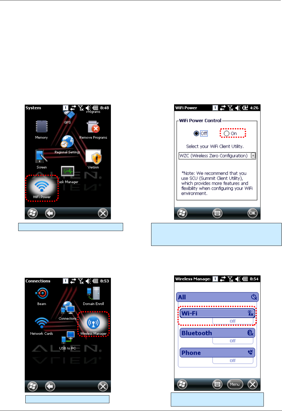default, in order to conserve battery power. Use the Wireless Manager to control power to the
