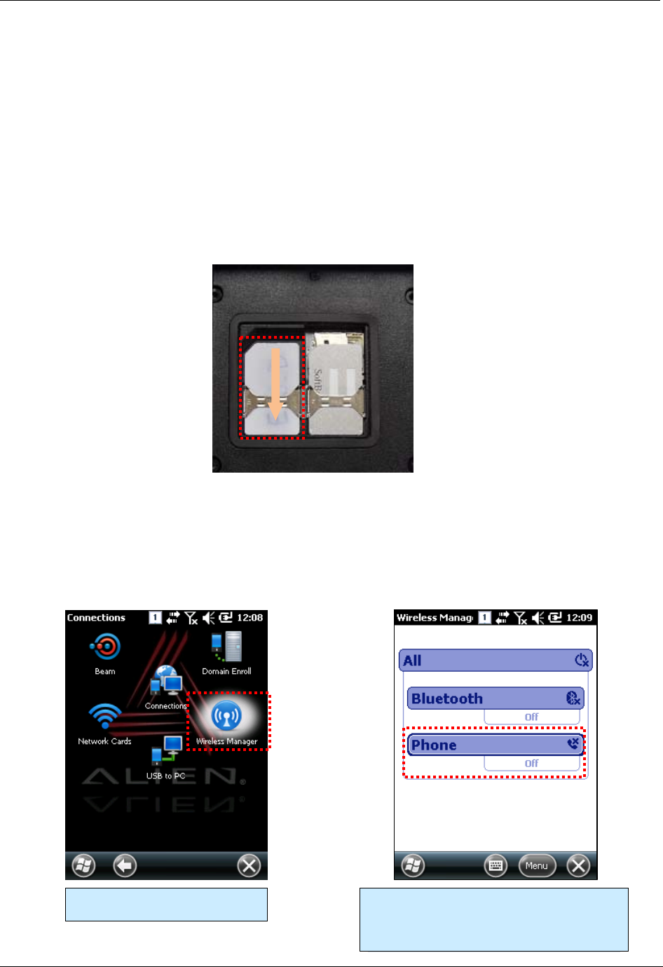 A SIM card can be easily inserted and pulled out along the arrow direction. Note the location of the