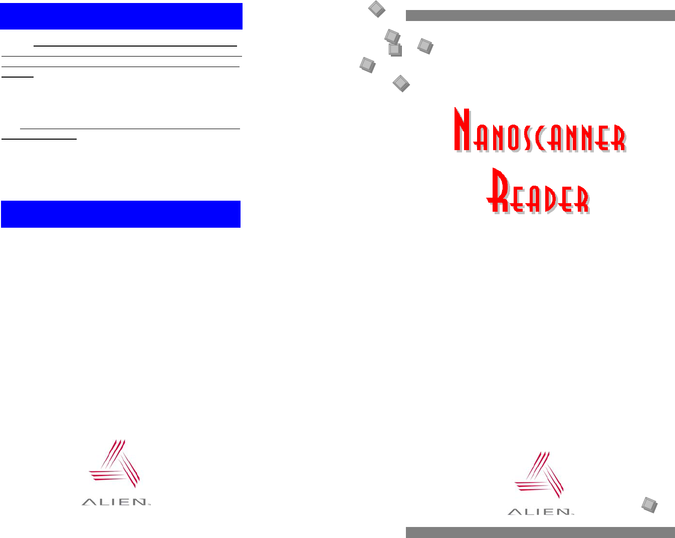 Alien Technology Corporation Frequency Hopping Tag Identification Reader Quick Installation Guide