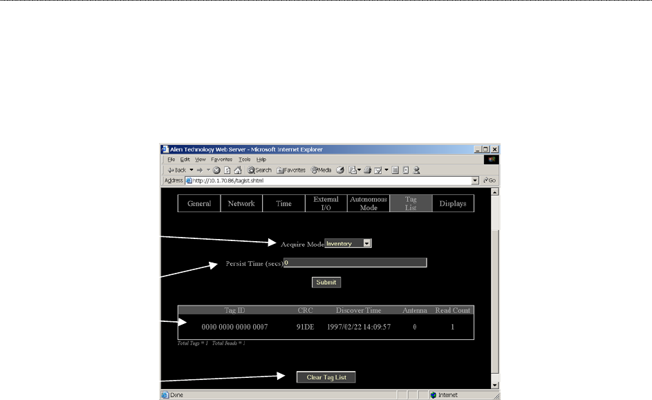 Inventory and the persist time is –1, telling the reader to build up a tag list until