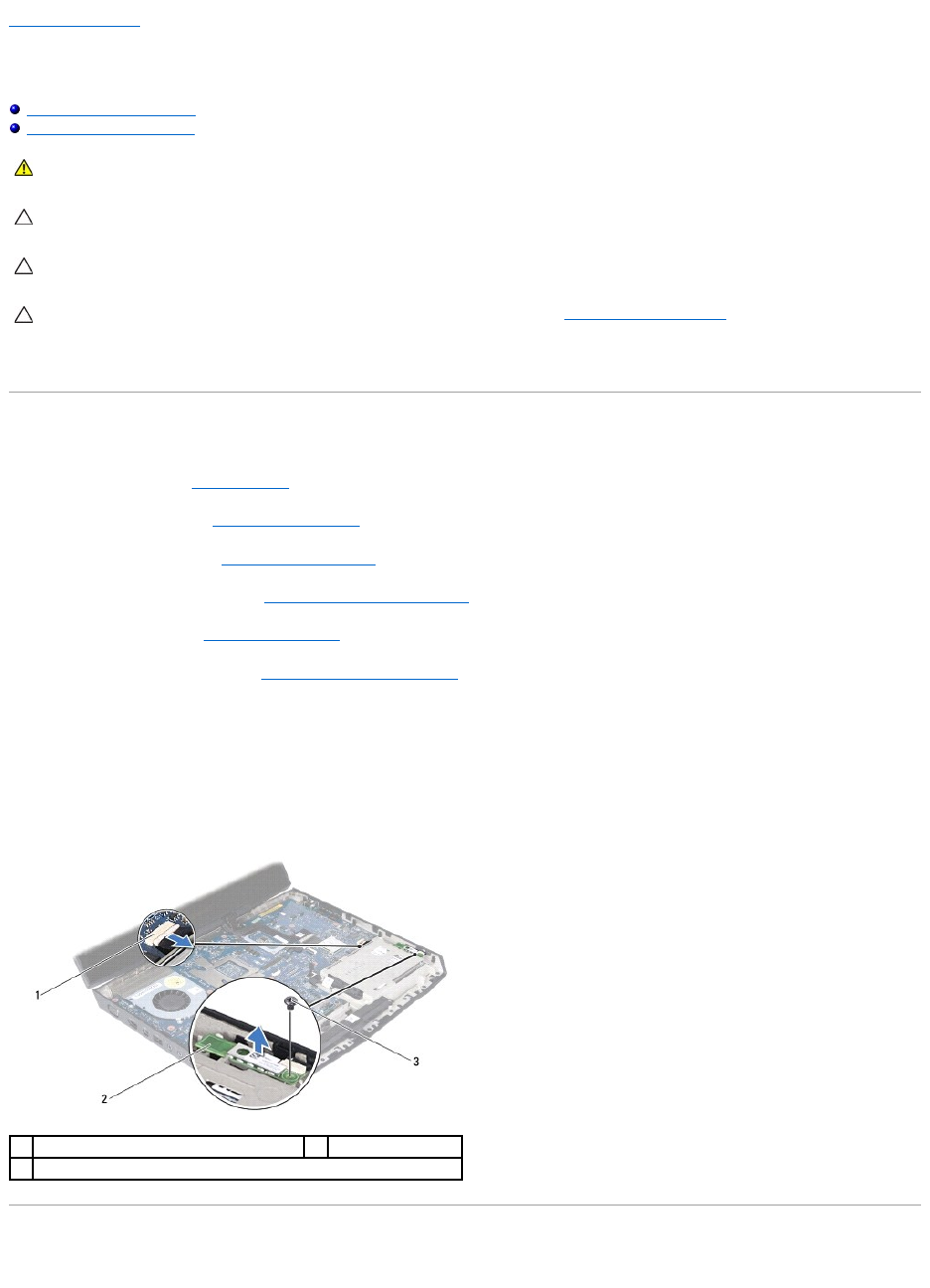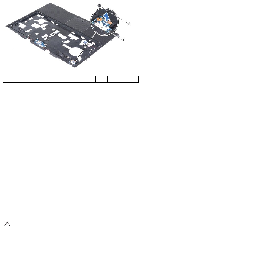 8. Remove the two screws that secure the power-button board to the palm- rest assembly.