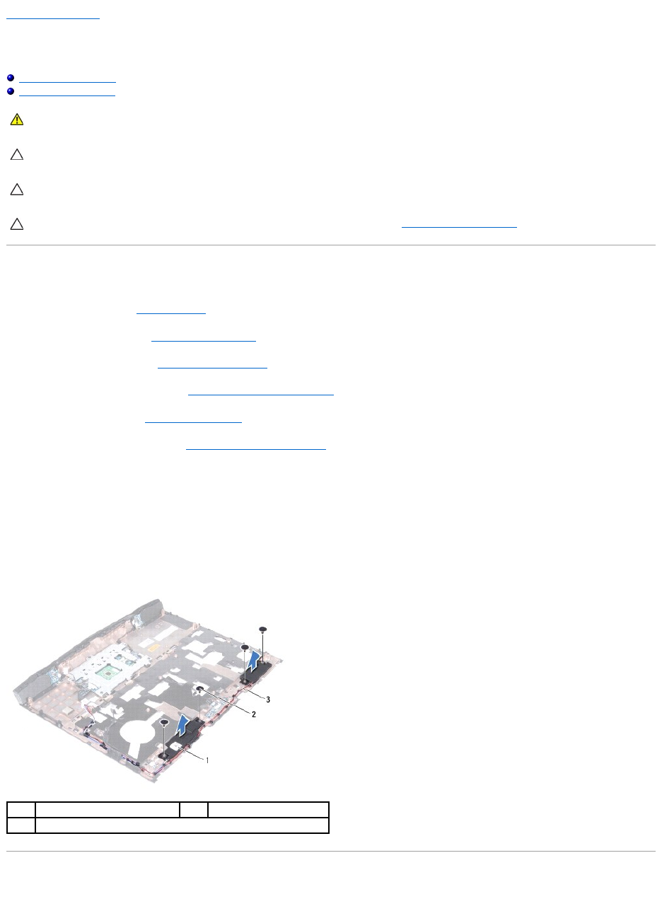 9. Remove the four screws that secure the speakers to the palm-rest assembly.