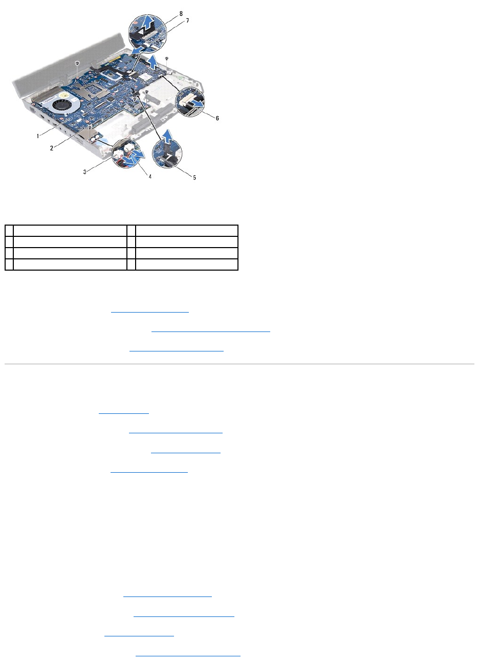 16. Lift and ease the connectors on the system board out of the slots on the computer base.