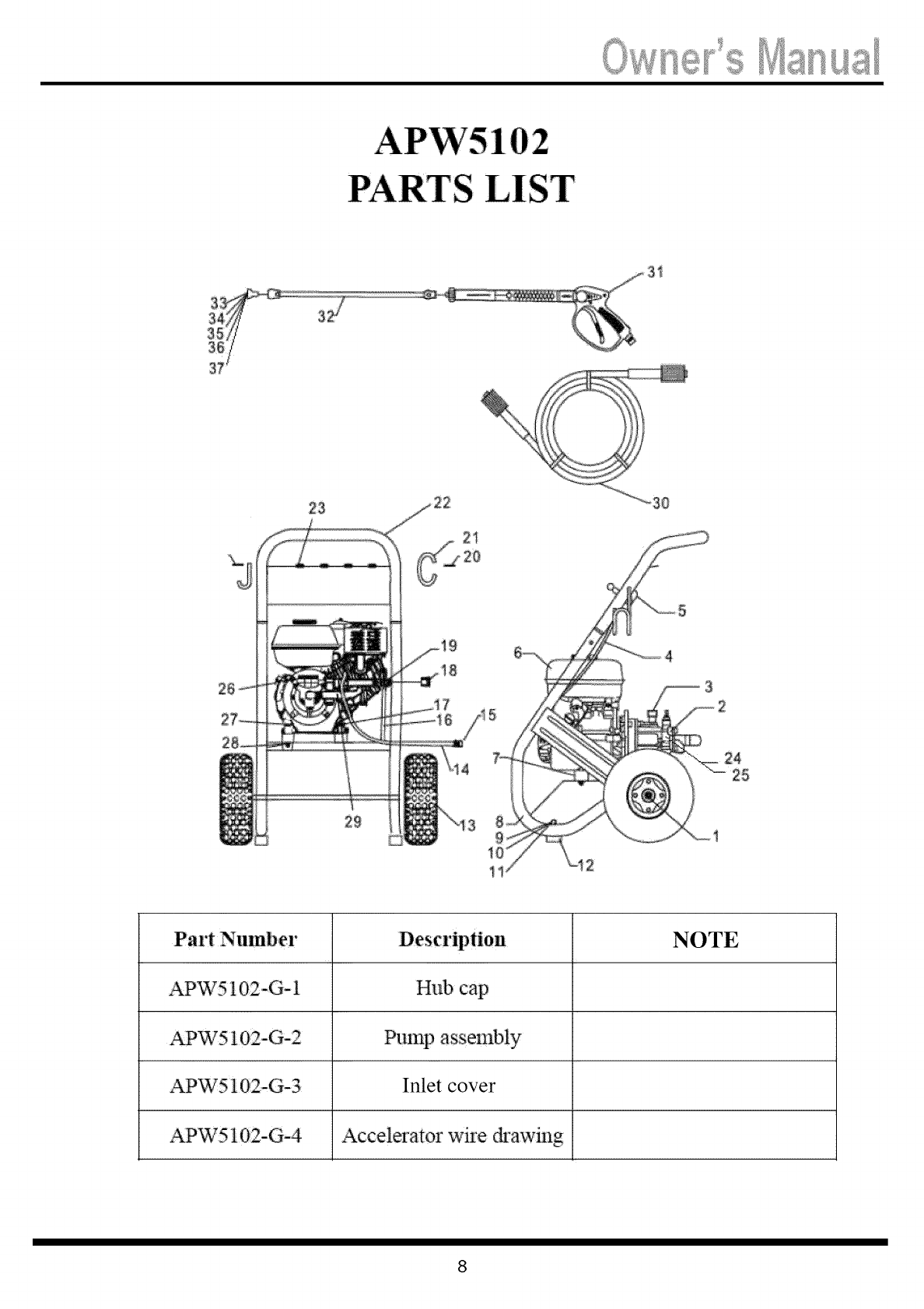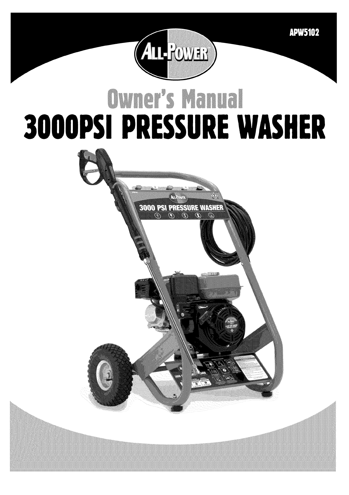 User Manual: All Power APW5102 APW5102 ALL POWER POWER WASHER, GAS - Manuals and Guides View the owners manual for your ALL POWER POWER WASHER, GAS #APW5102. Home:ALL POWER:/ Pressure Washer Parts:ALL POWER pressure washer parts:#APW5102 ALL POWER pressure washer parts:#APW5102 ALL POWER power washer, gas manual