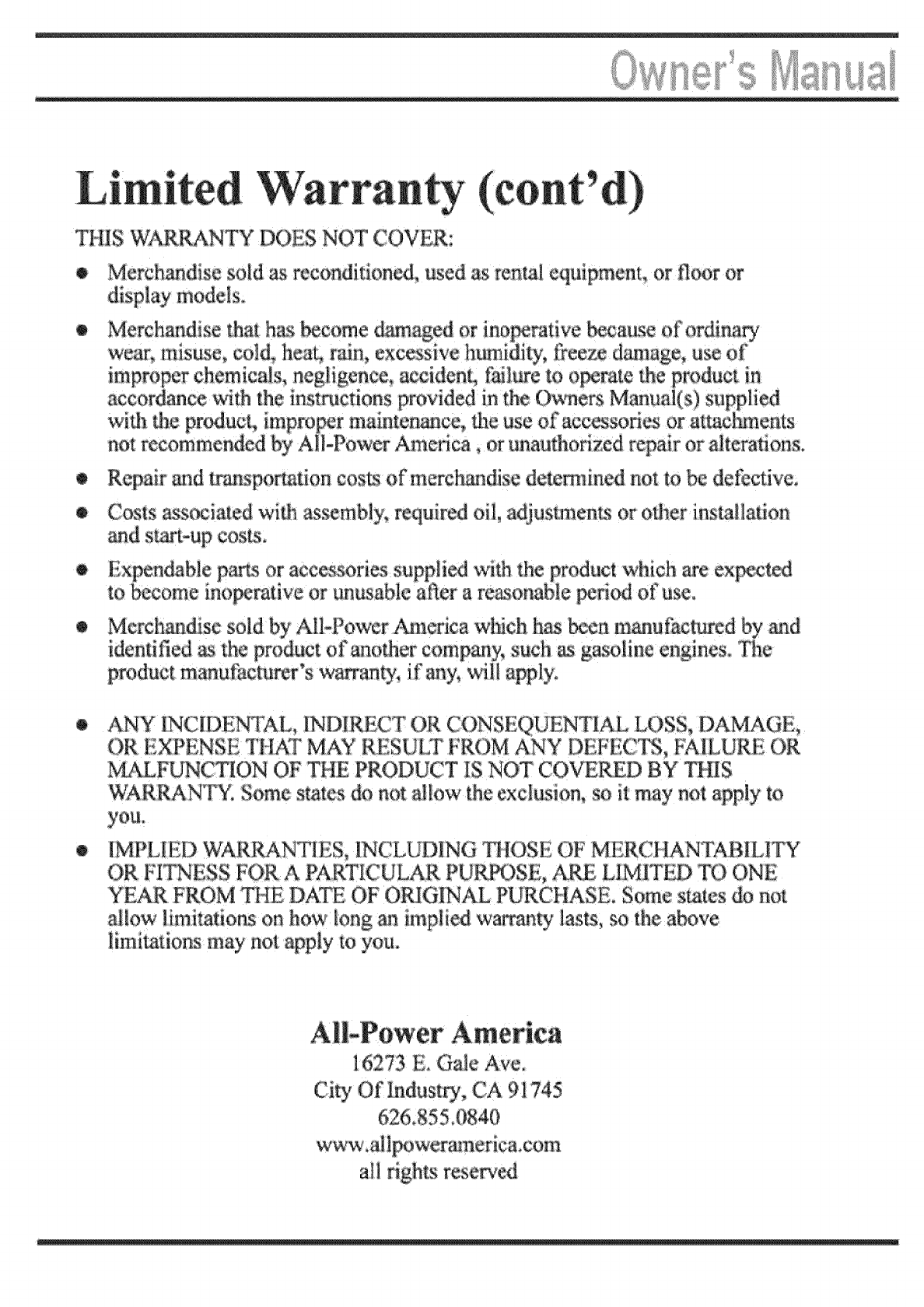 Allo.PowerAmerica warrants to the original purchaser who uses the product +na