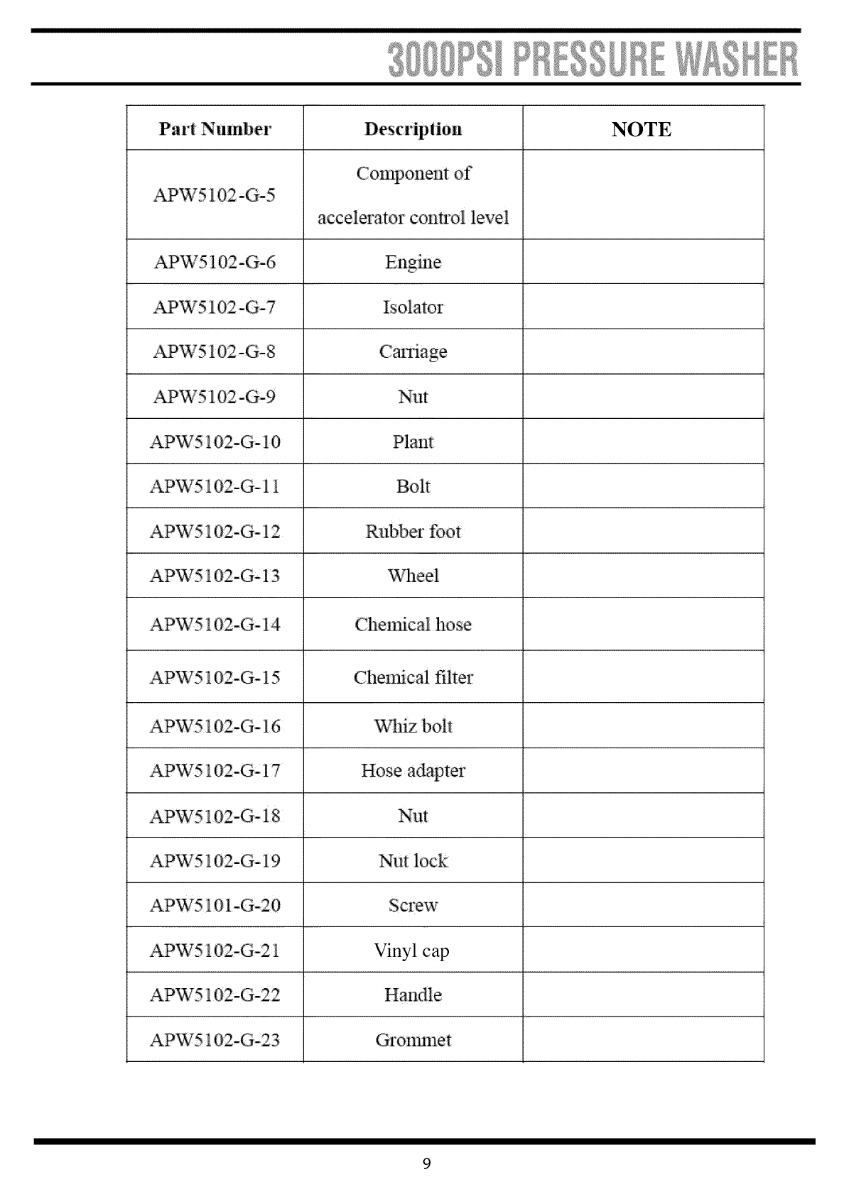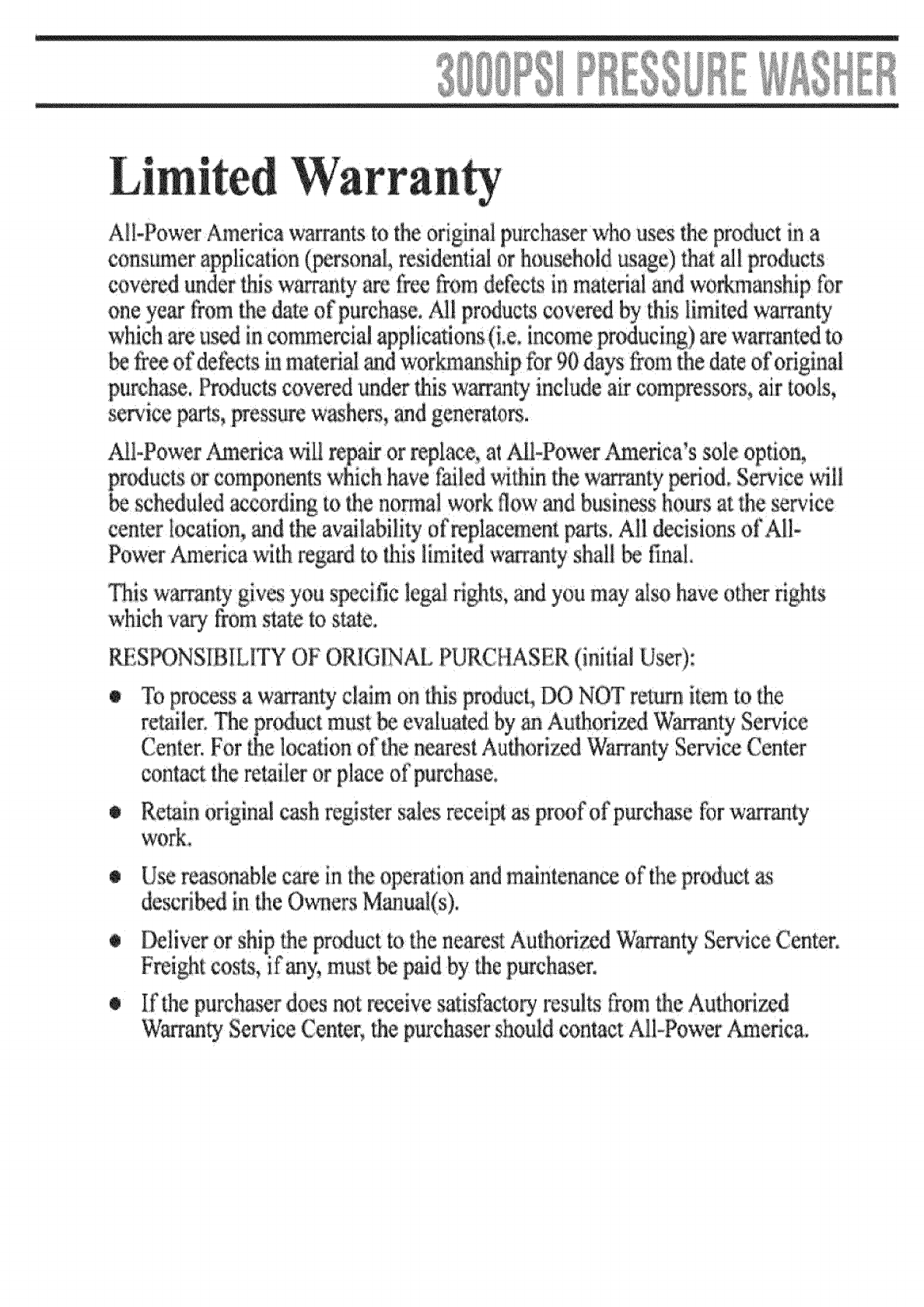 All Power APW5102 User Manual WASHER, GAS Manuals And Guides 1006553L