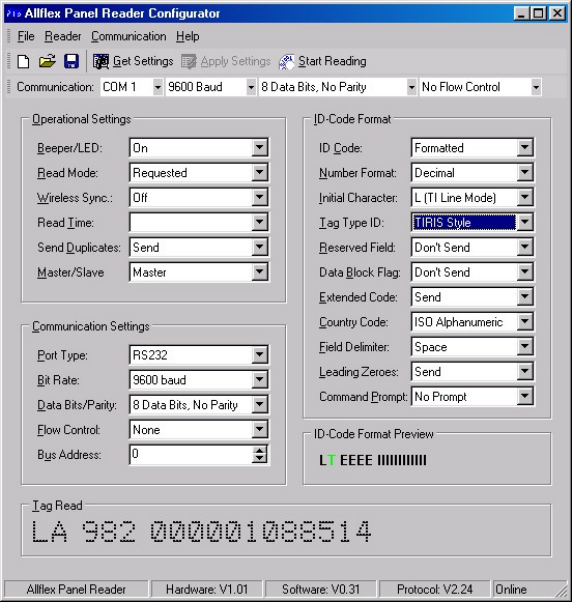 especially useful in determining the format of the serial data output in which the eartag’s ID code