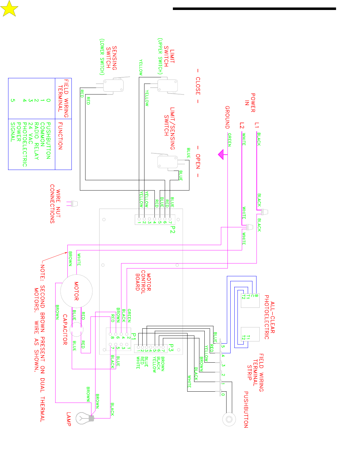 Opener by momentarily connecting Terminals 1 & 2 with a