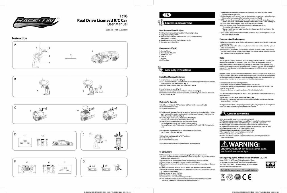Guangdong Alpha Animation and Culture Co., Ltd. LAMBORGHINI SESTO ELEMENTO manual