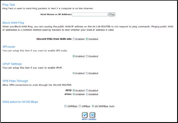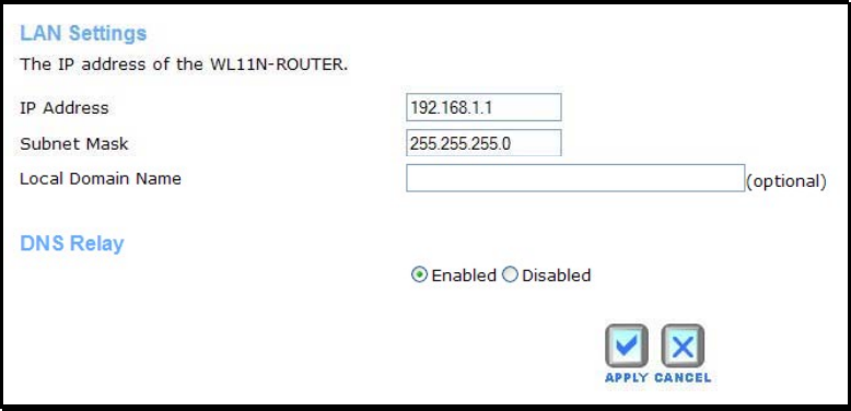 To change the LAN IP Address or Subnet Mask, type in the desired values and click the Apply