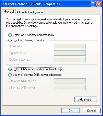 Internet Protocol (TCP/IP) Properties dialog box, click the button labeled Obtain