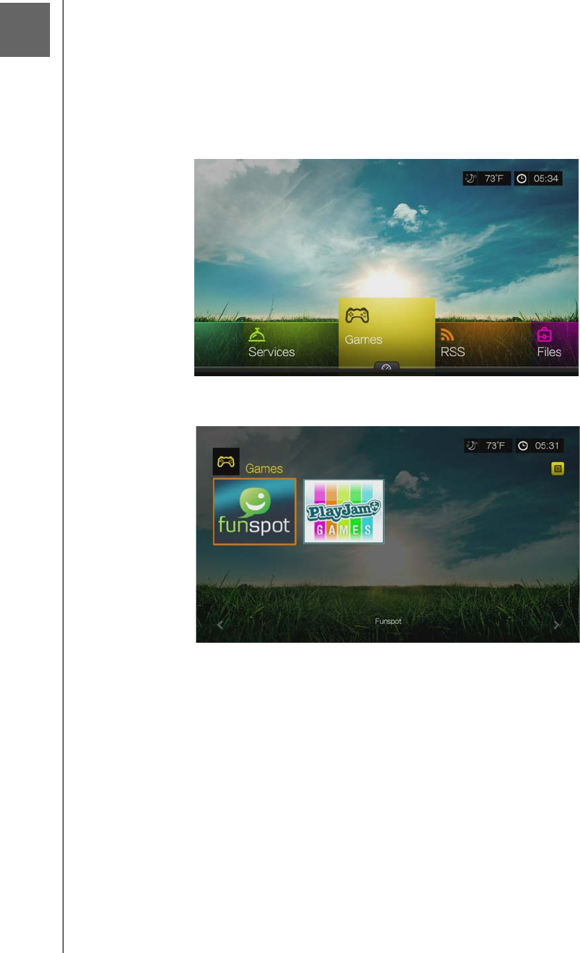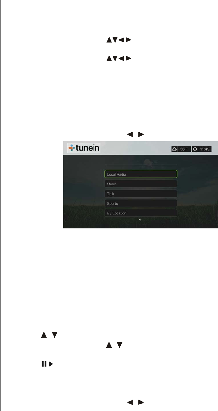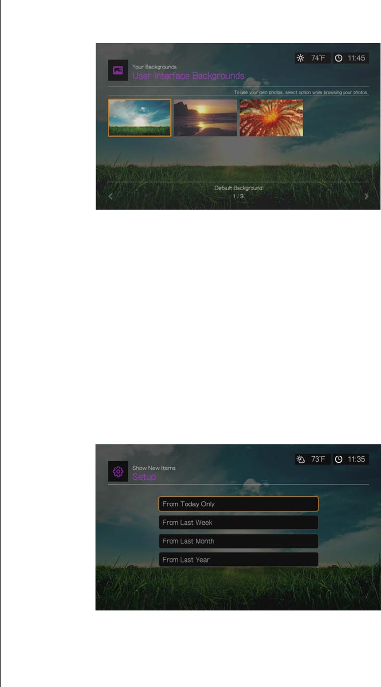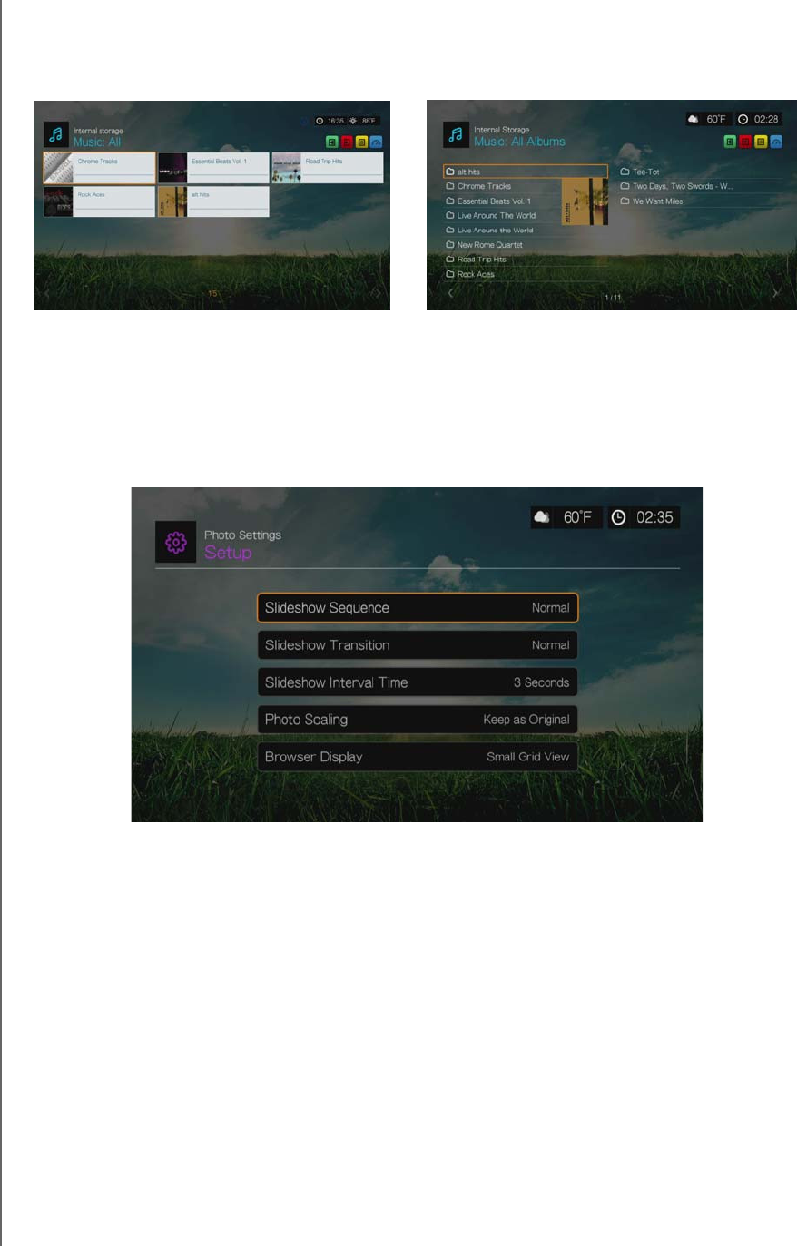 This screen contains select Picasa user photos. Use the navigation buttons to select