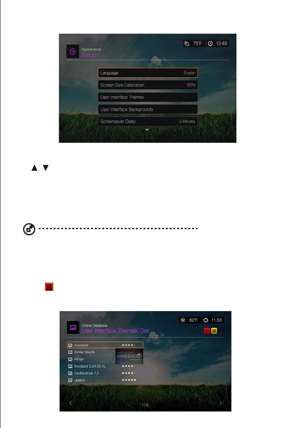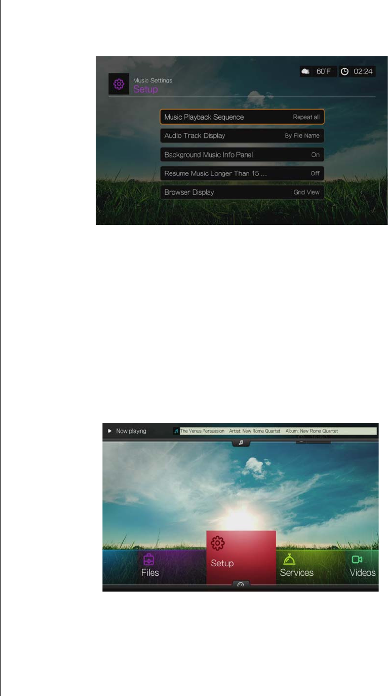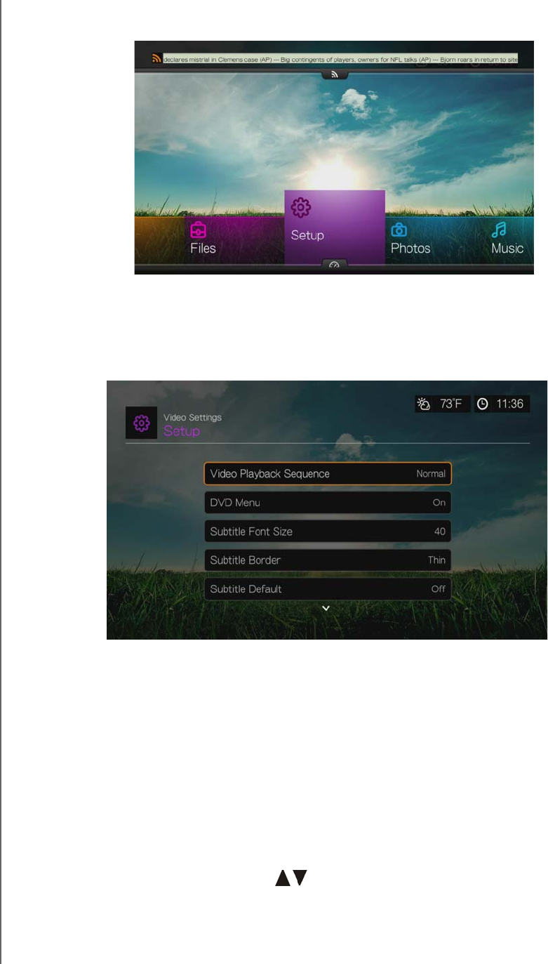 This screen contains select Picasa user photos. Use the navigation buttons to select