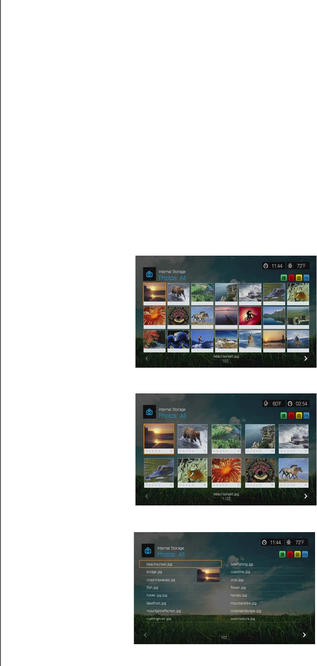 individual photos or press to begin a photo slideshow. When viewing a photo,