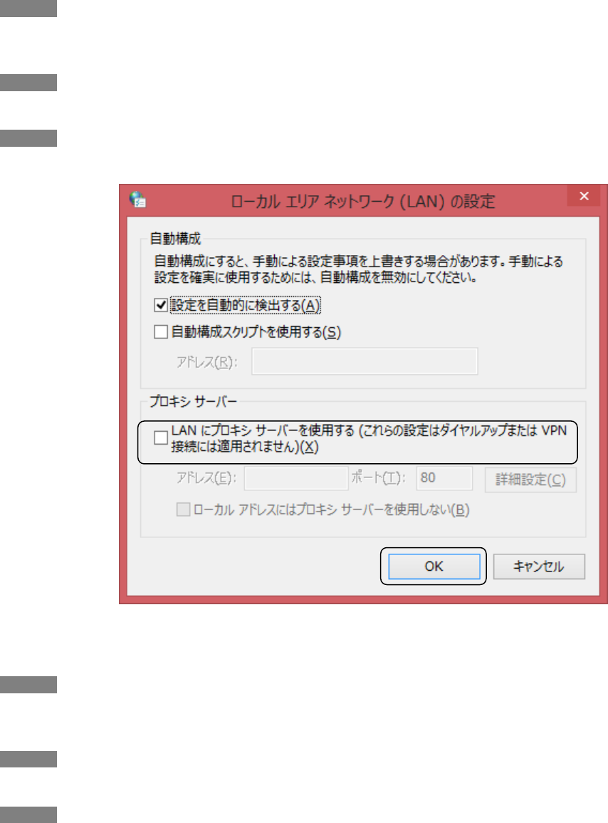 Click the [OK] button to return to "Local Area Network (LAN) Settings".