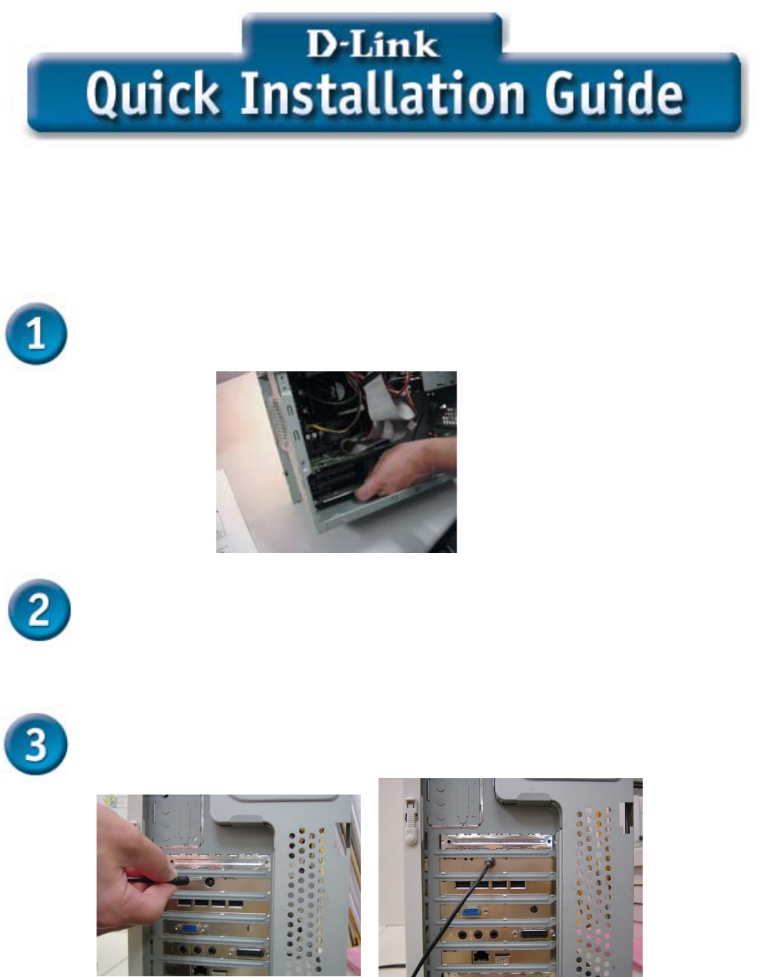 Secure the DWL-G520E PCI bracket to the computer back panel.