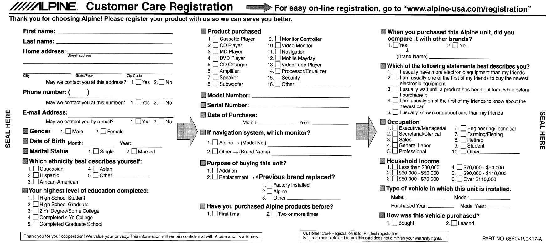 Phone 1-800-ALPINE-1 (1-800-257-4631)