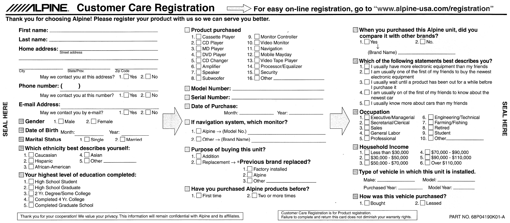 Phone 1-800-ALPINE-1 (1-800-257-4631)