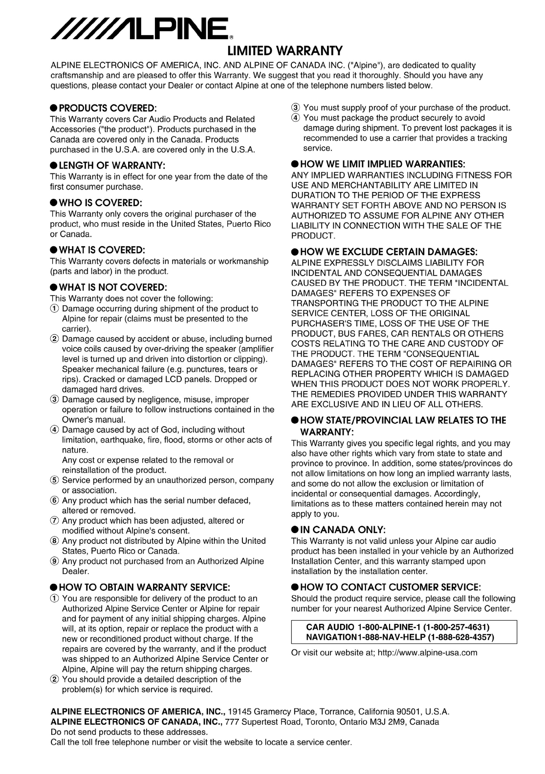 ALPINE ELECTRONICS MARKETING, INC.