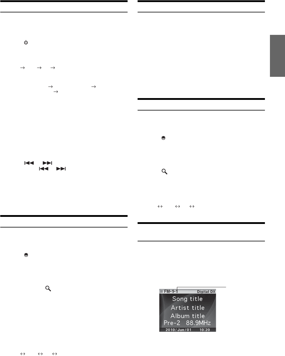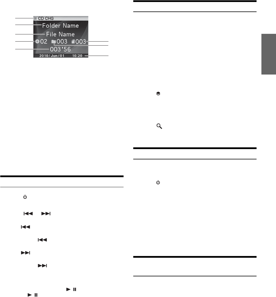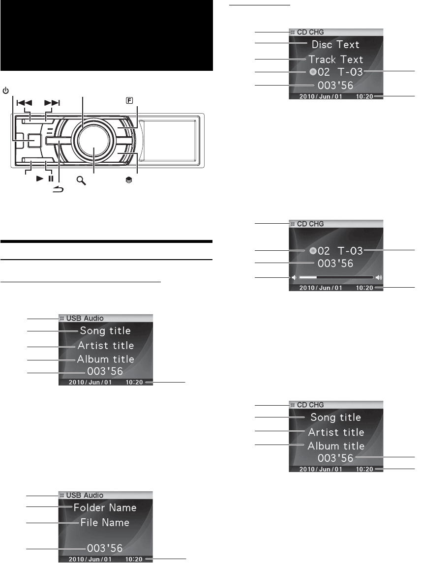 - USB memory/ Portable audio player/Changer- How to View the Display