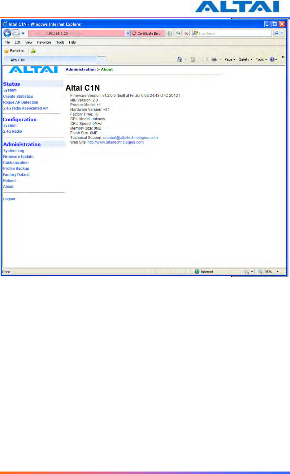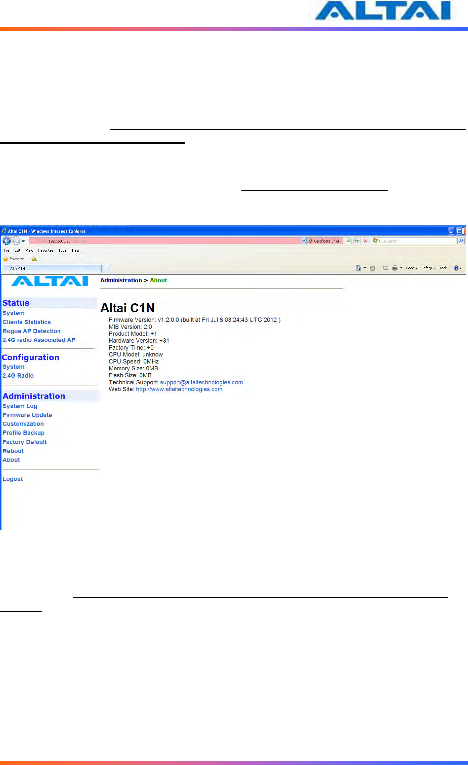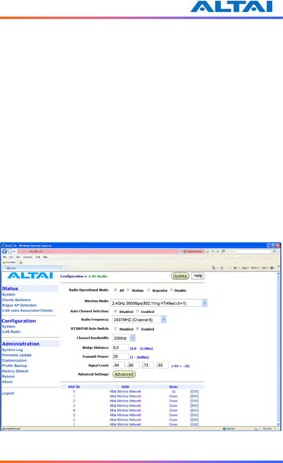 Altai Technologies WA1011N-G C1n Super WiFi CPE/AP WA1011N-G User Manual