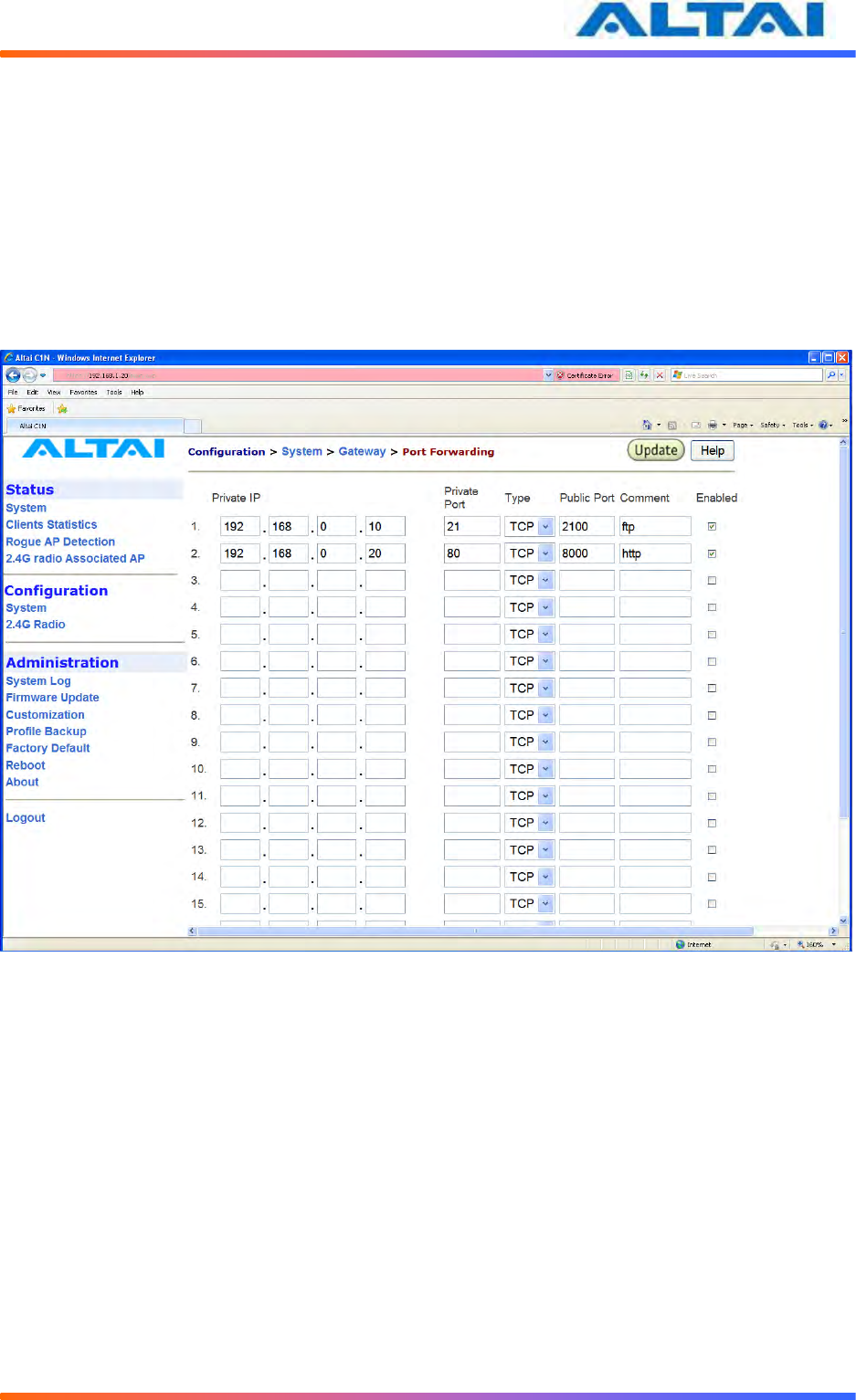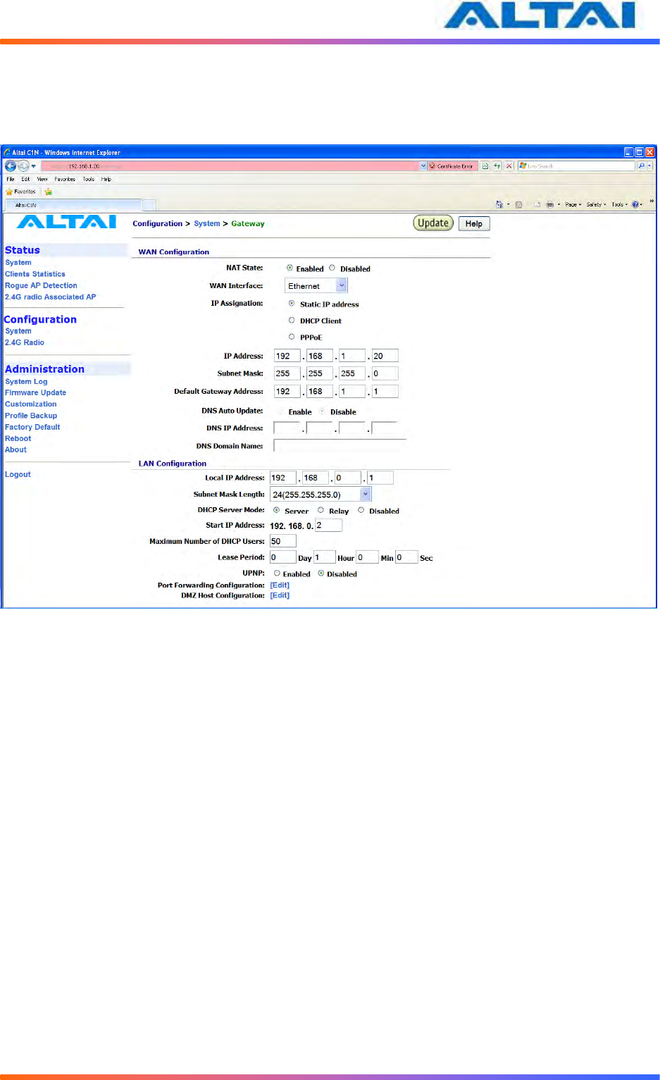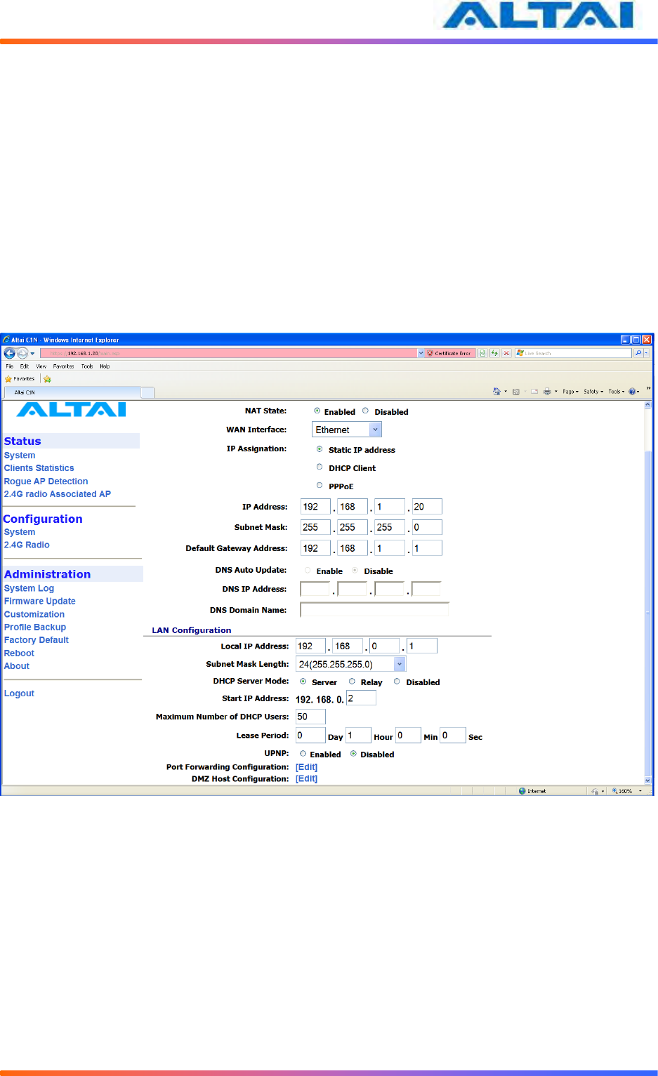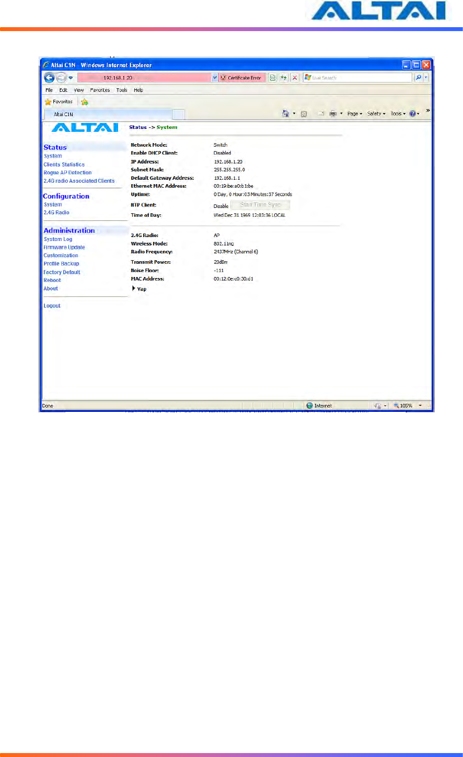 Altai Technologies WA1011N-G C1n Super WiFi CPE/AP WA1011N-G User Manual