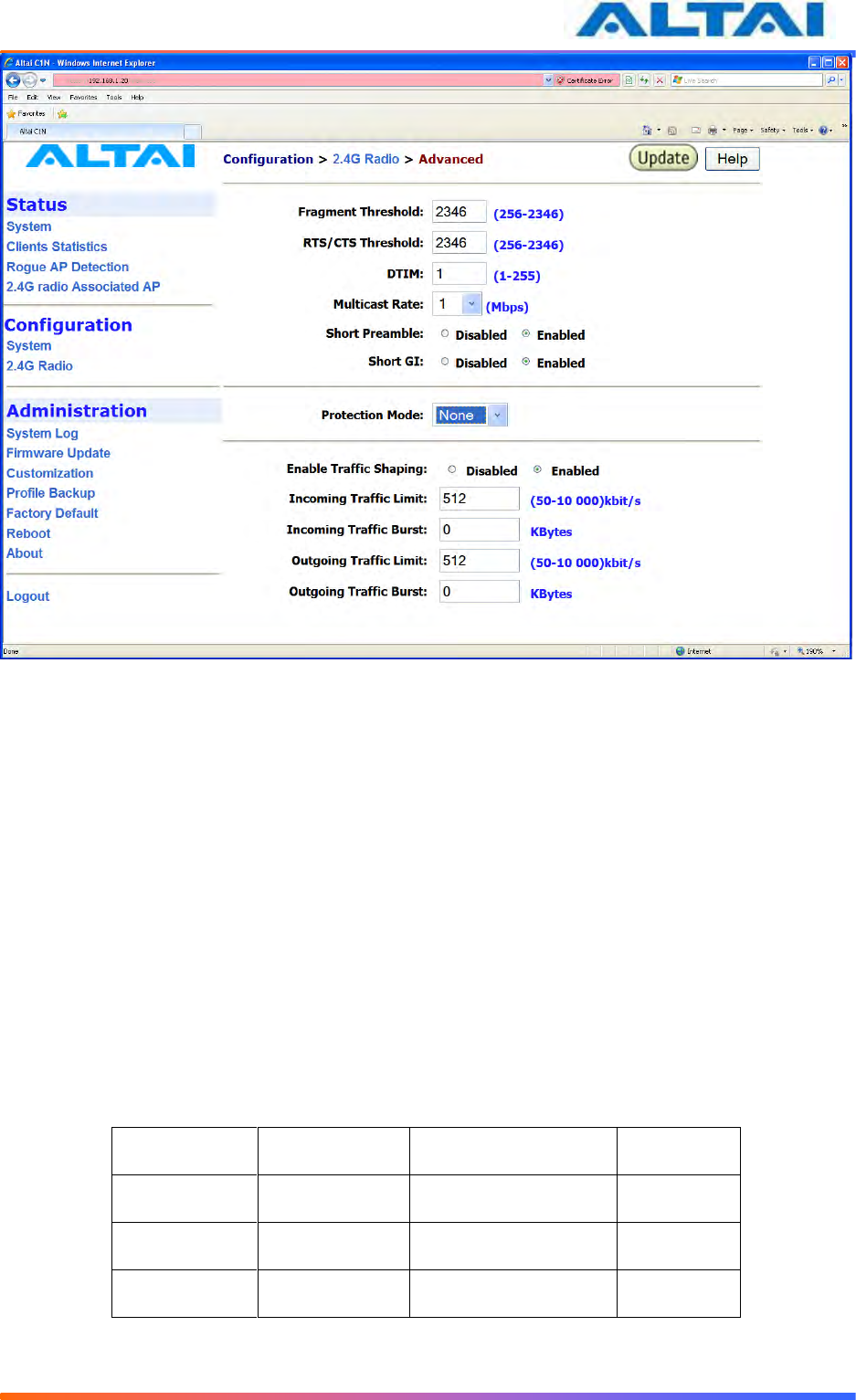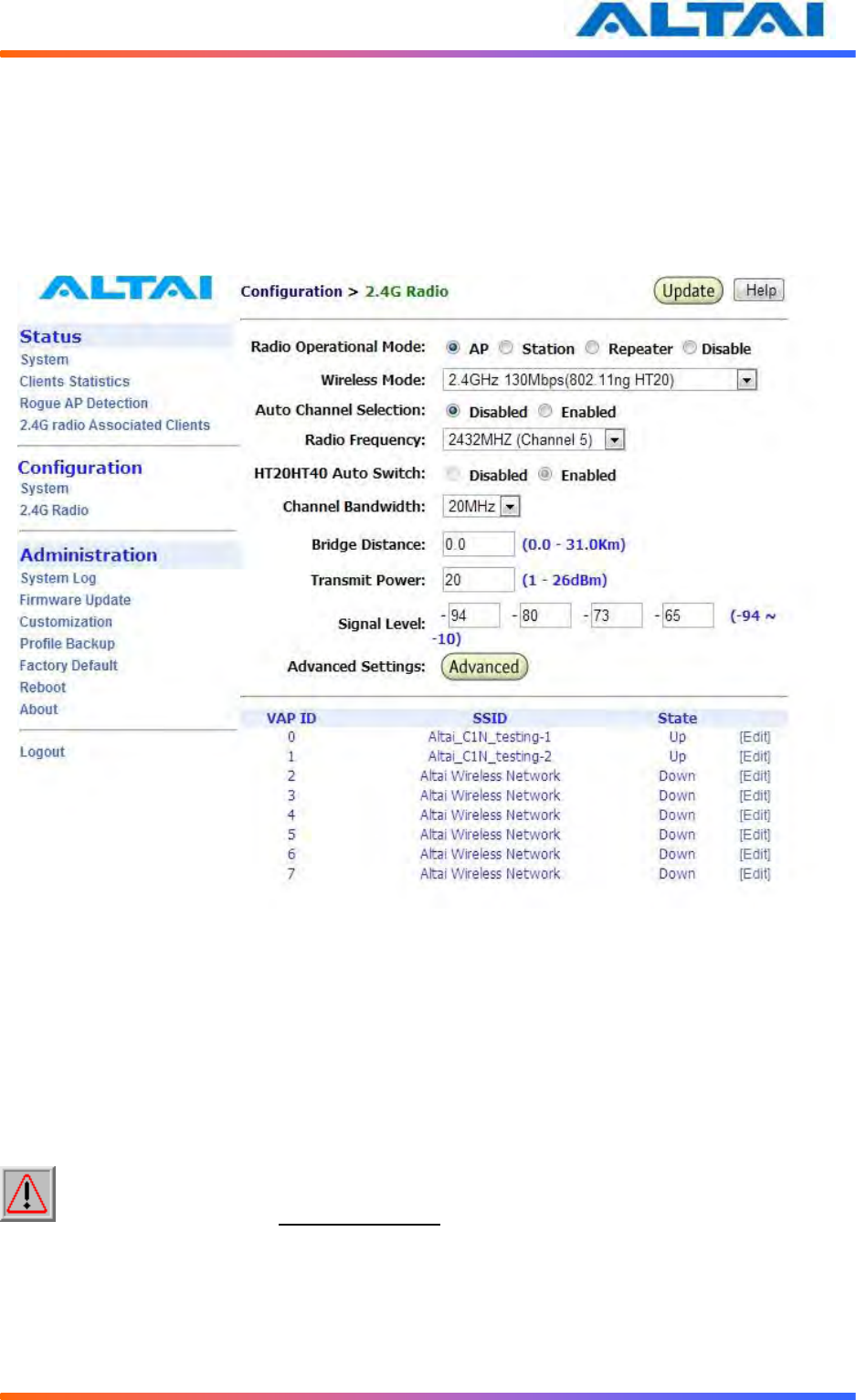 4.11 Setup – 2.4GHz Radio Parameter ............................................................................................. 27