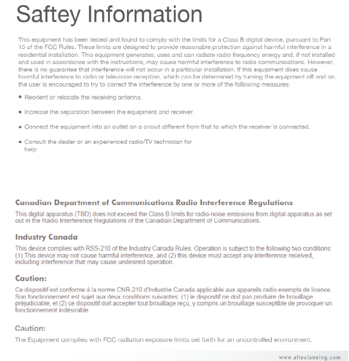 replacement manual, you may download a manual from www.alteclansing.com.) Also, consequential and incidental