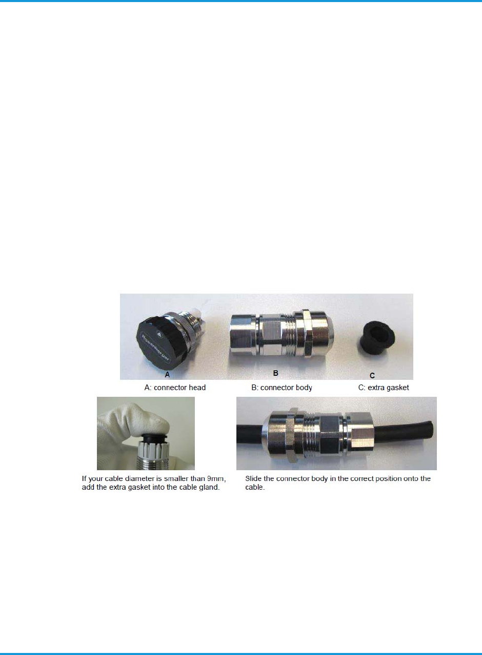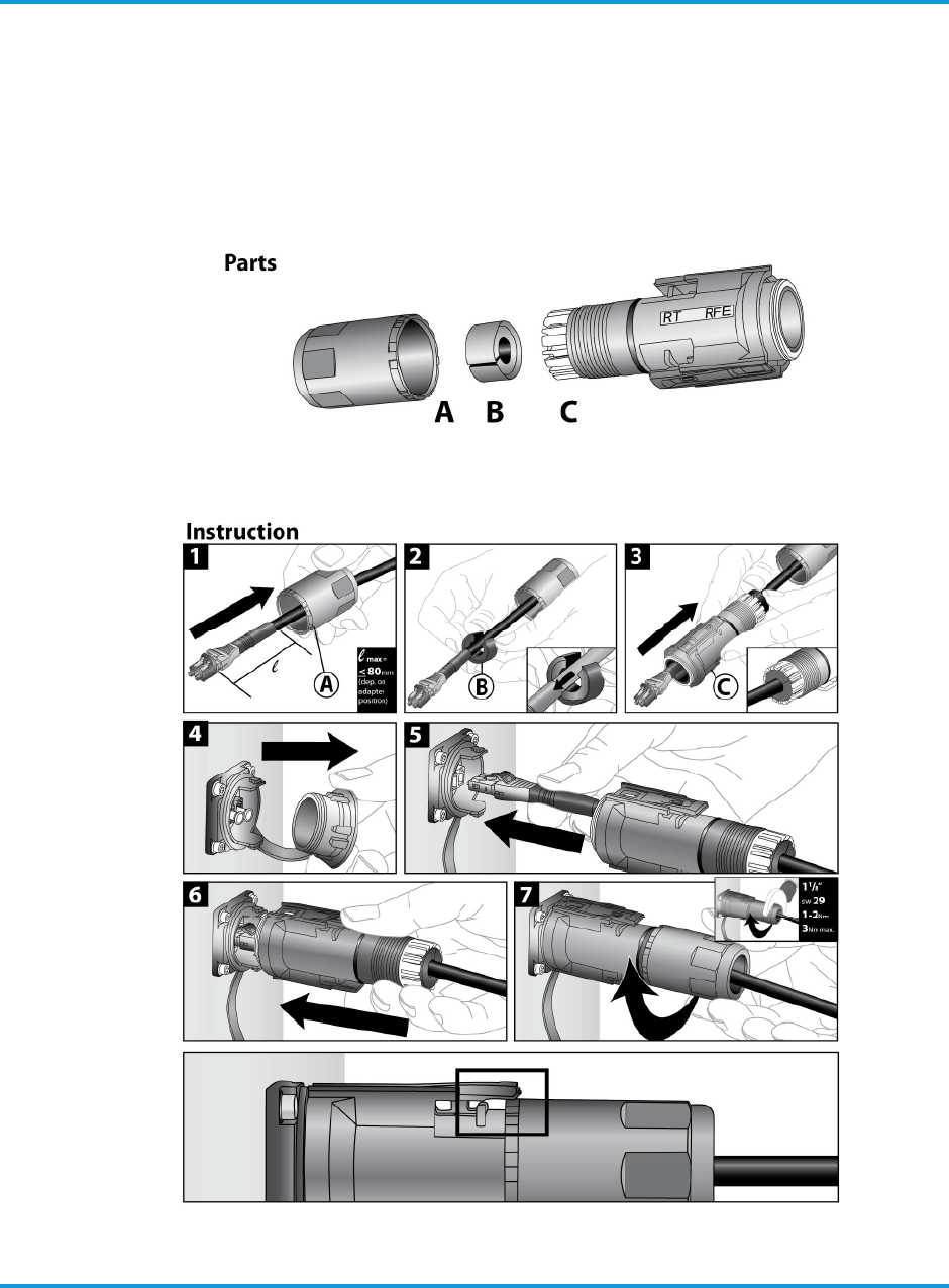 For assembly instructions of the circular DIN female connector and alarms cable, refer