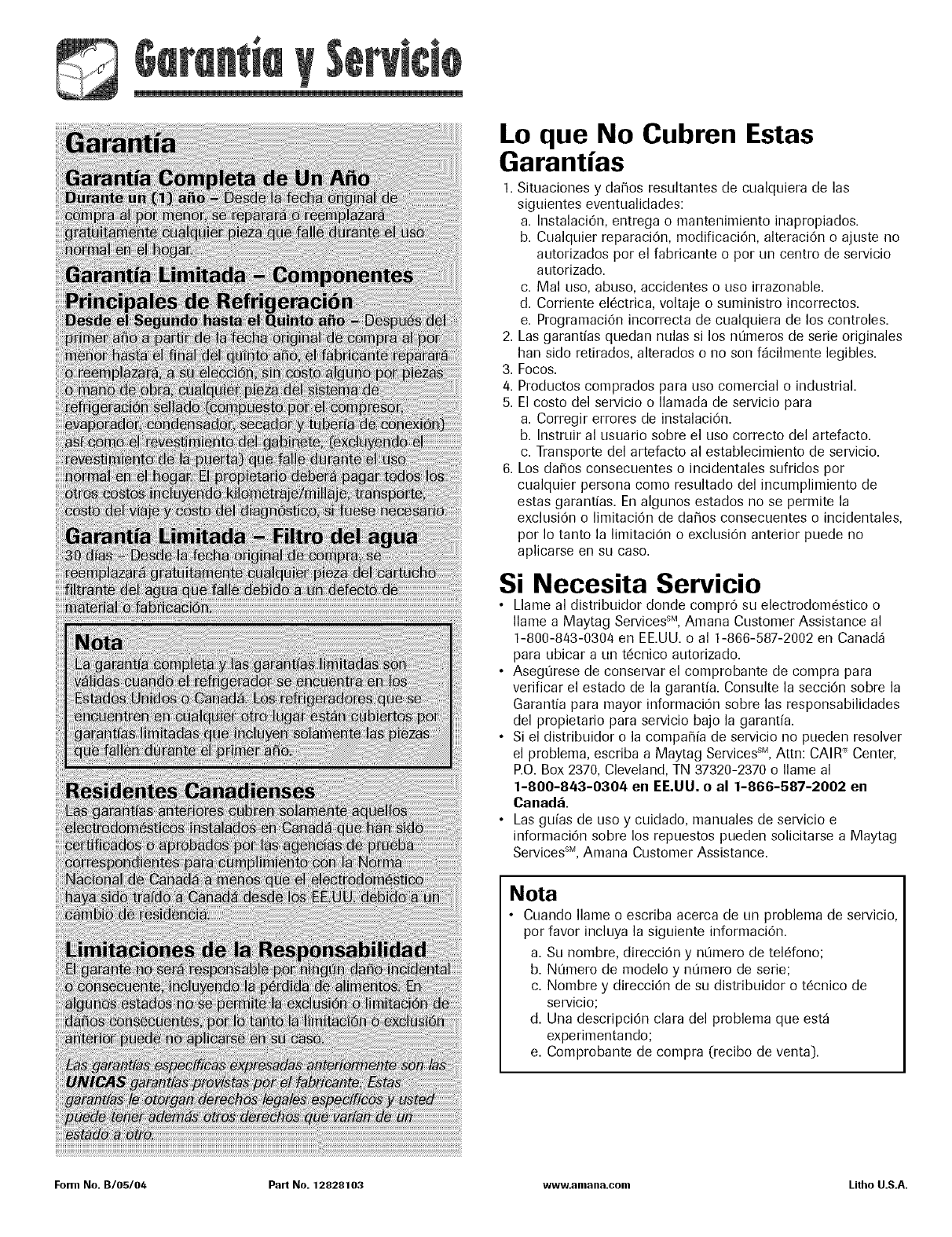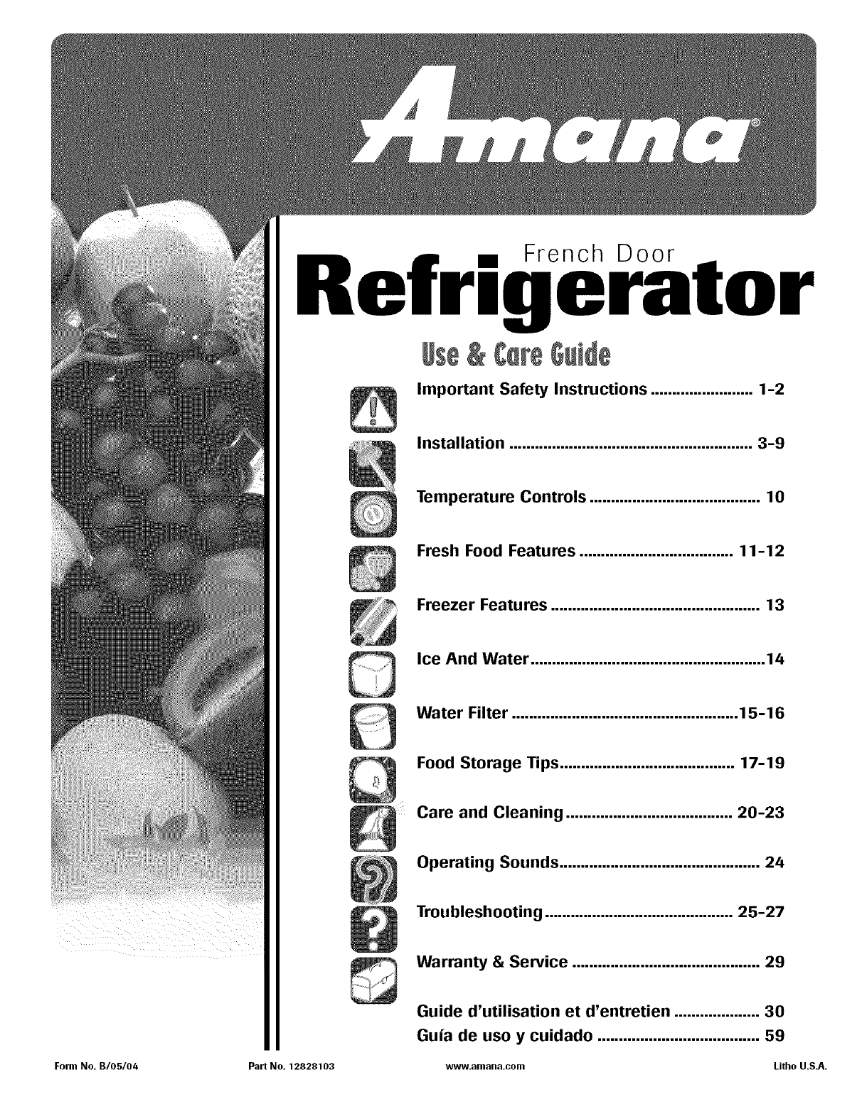 Form No. B/05/04 Part No. 12828103 www.amana.com Litho U.S.A.