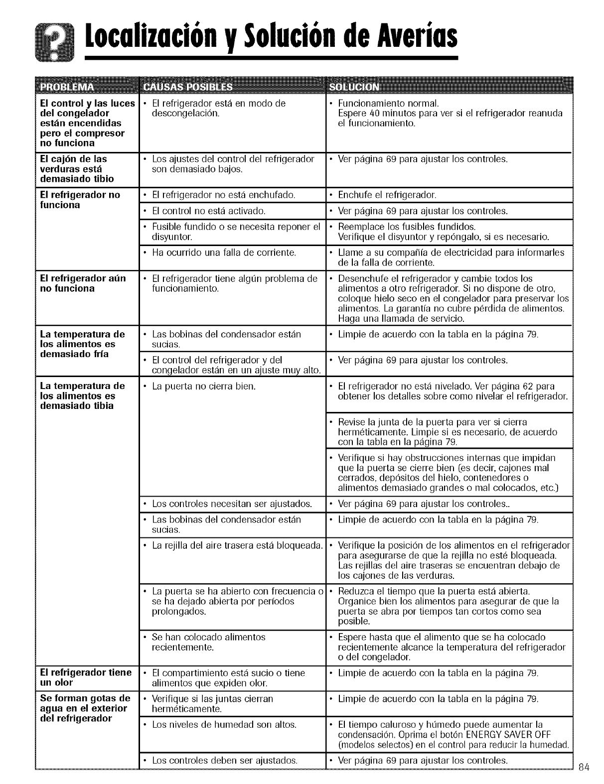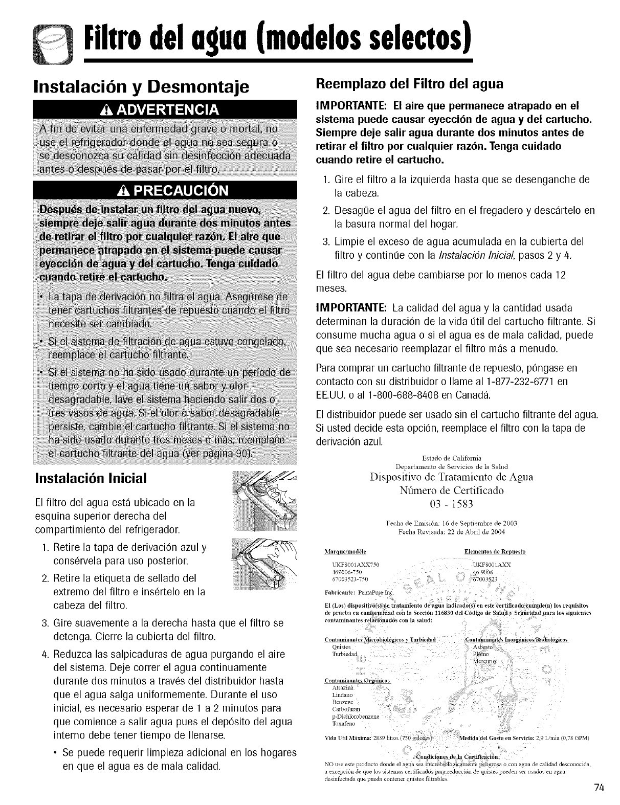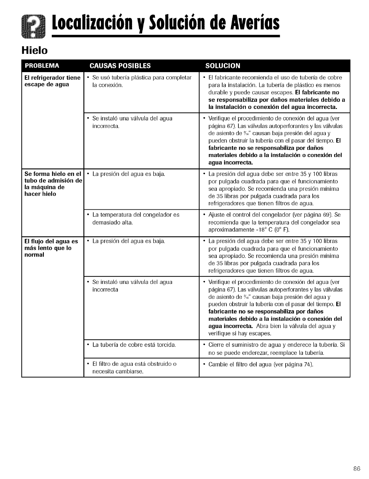 • El filtro de agua est_ obstruido o • Cambie el filtro del agua (ver p_gina 74).