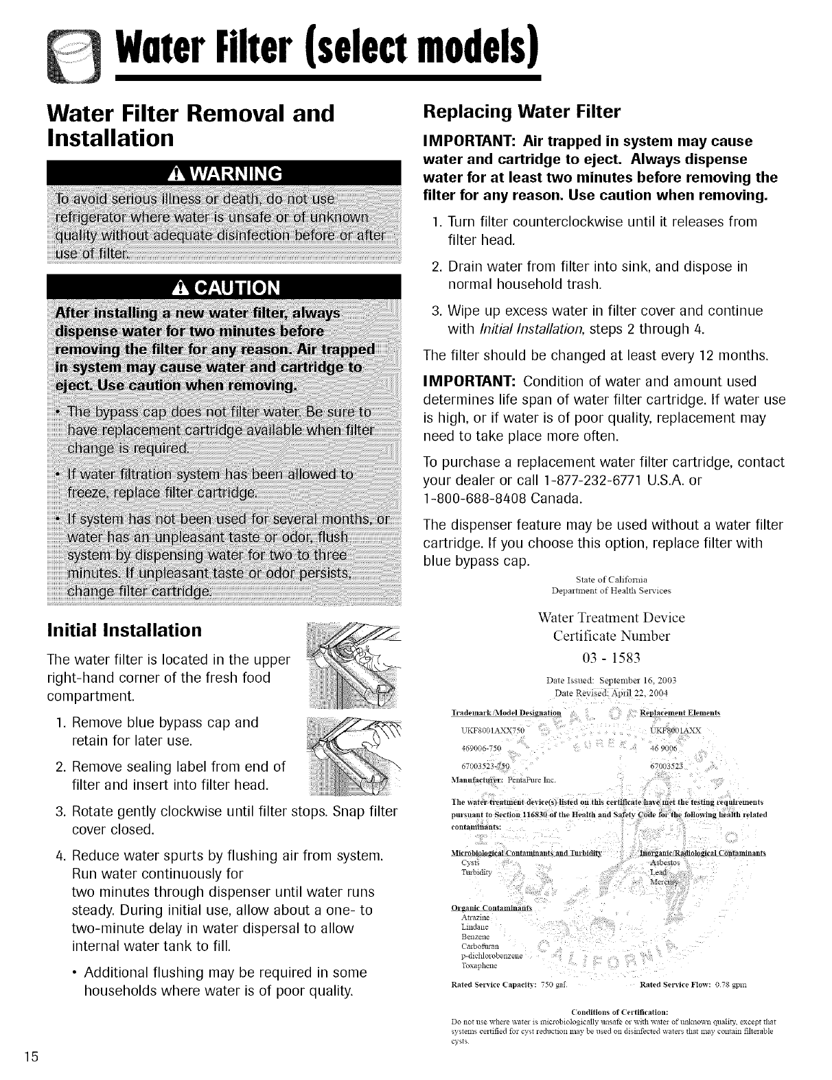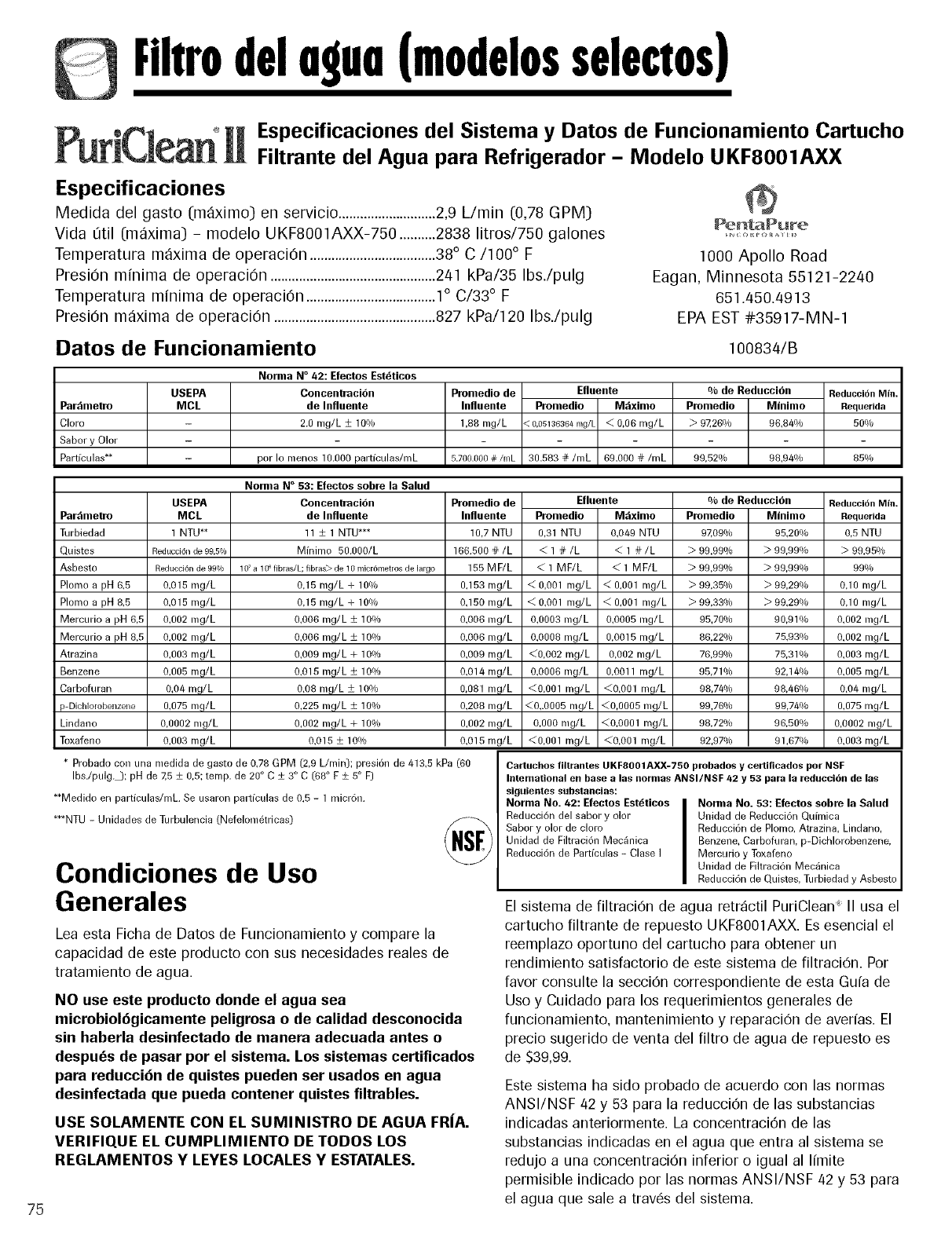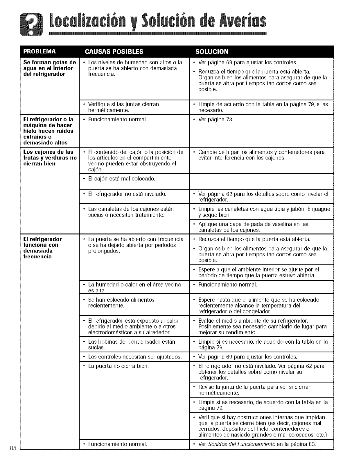 • El filtro de agua est_ obstruido o • Cambie el filtro del agua (ver p_gina 74).