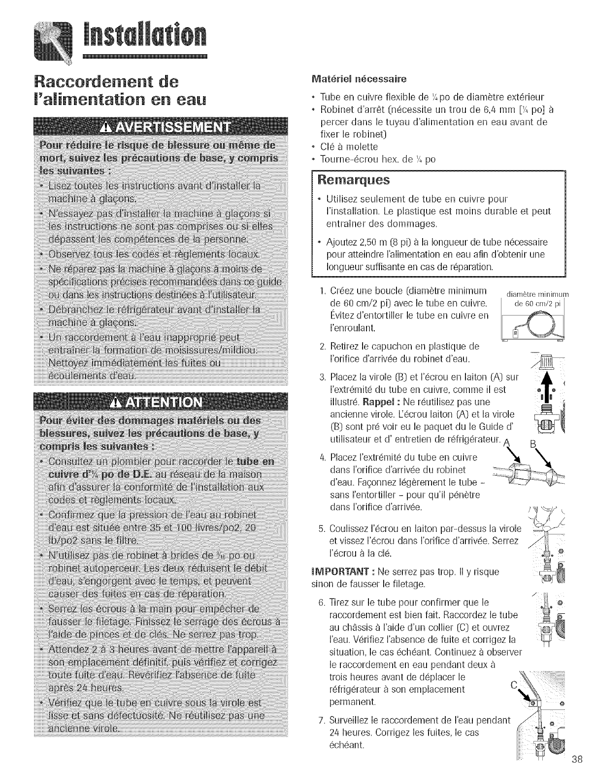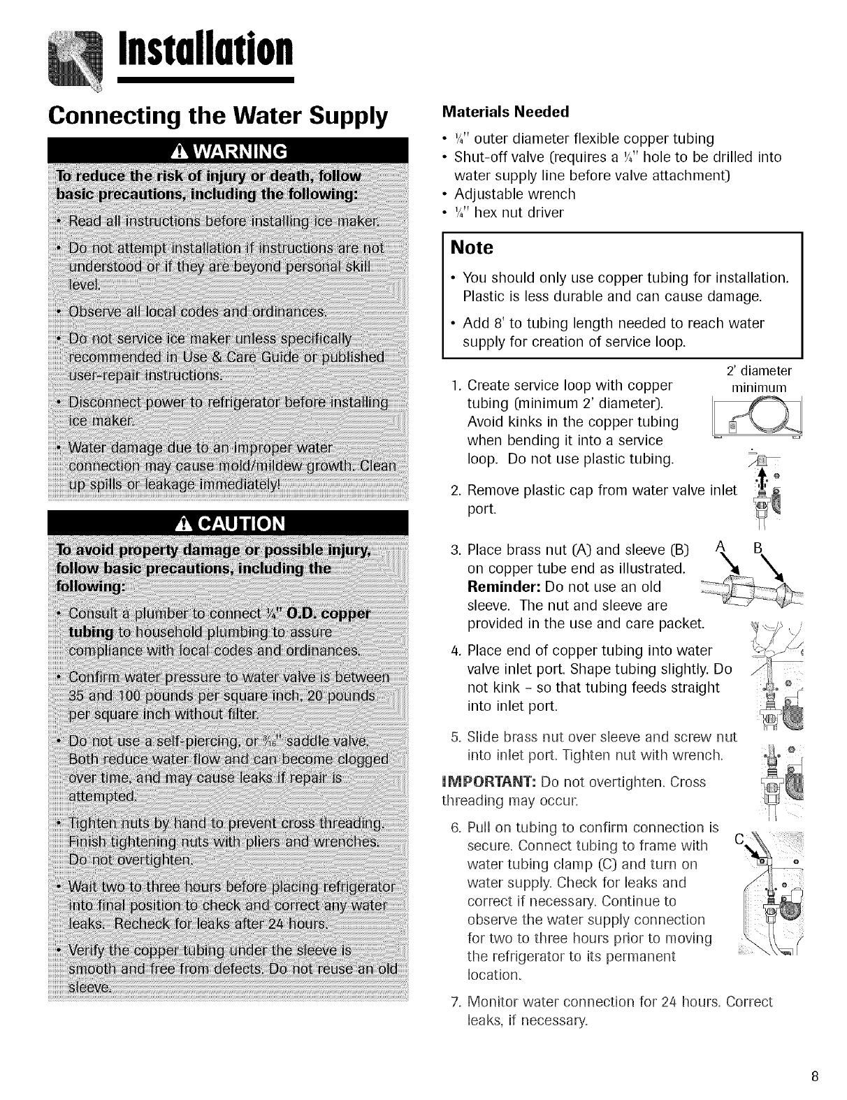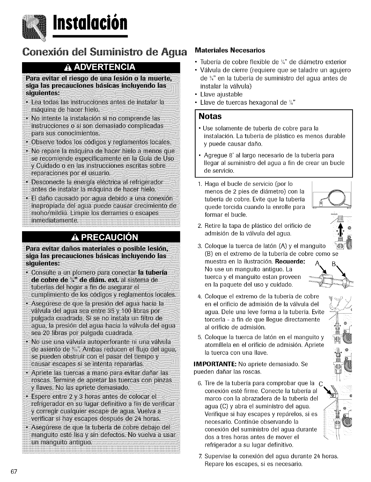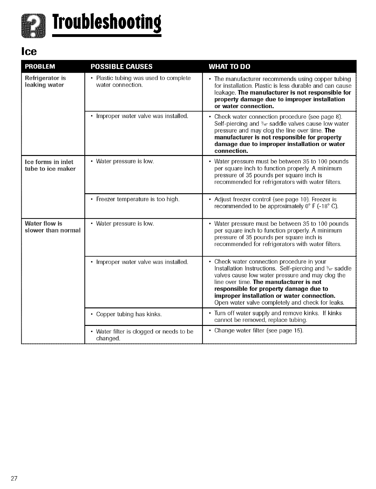 • La tuberfa de cobre est_ torcida. • Cierre el suministro de agua y enderece la tuberfa. Si