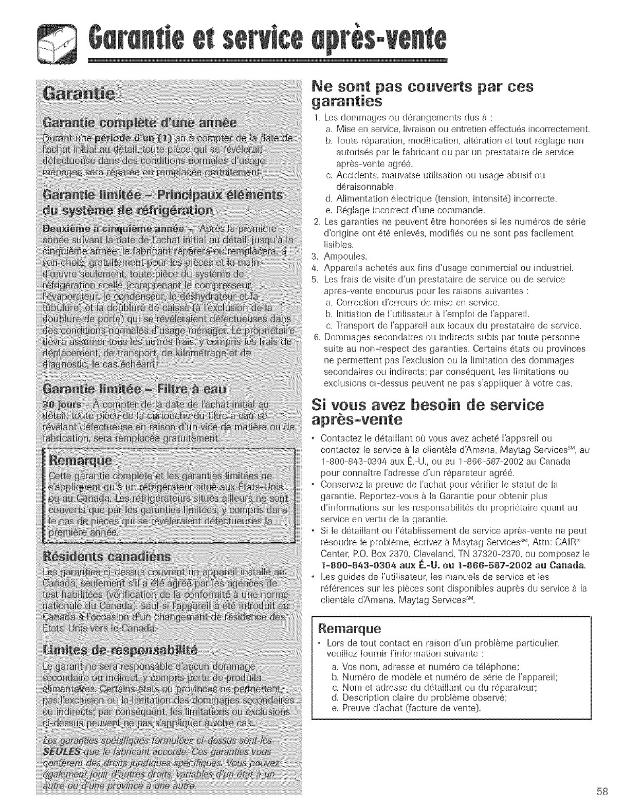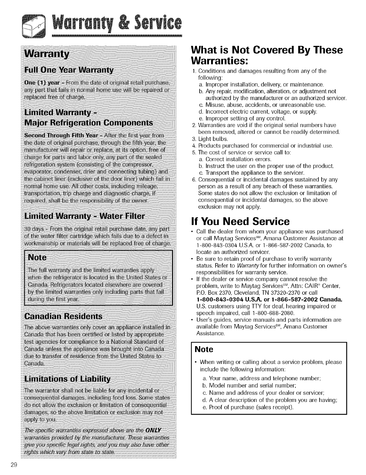 Ilame a Maytag Services sM,Amana Customer Assistance al