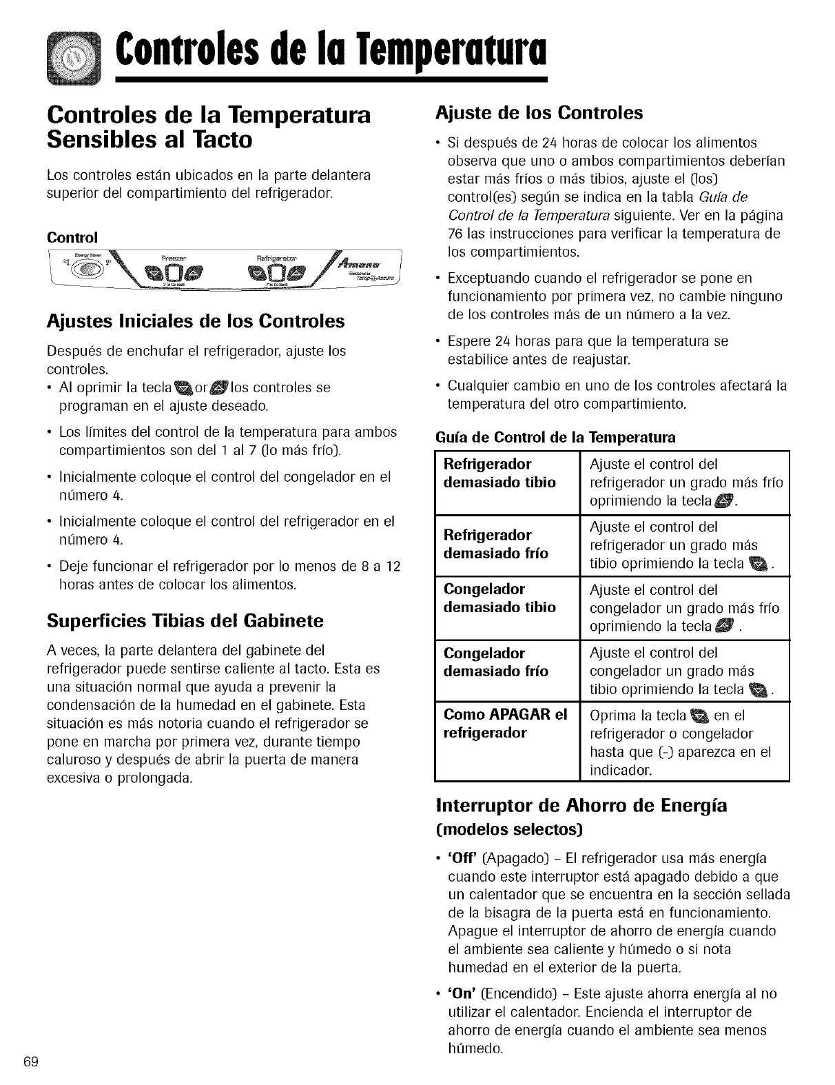 • Ajuste el control del congelador (ver p_gina 69). Se