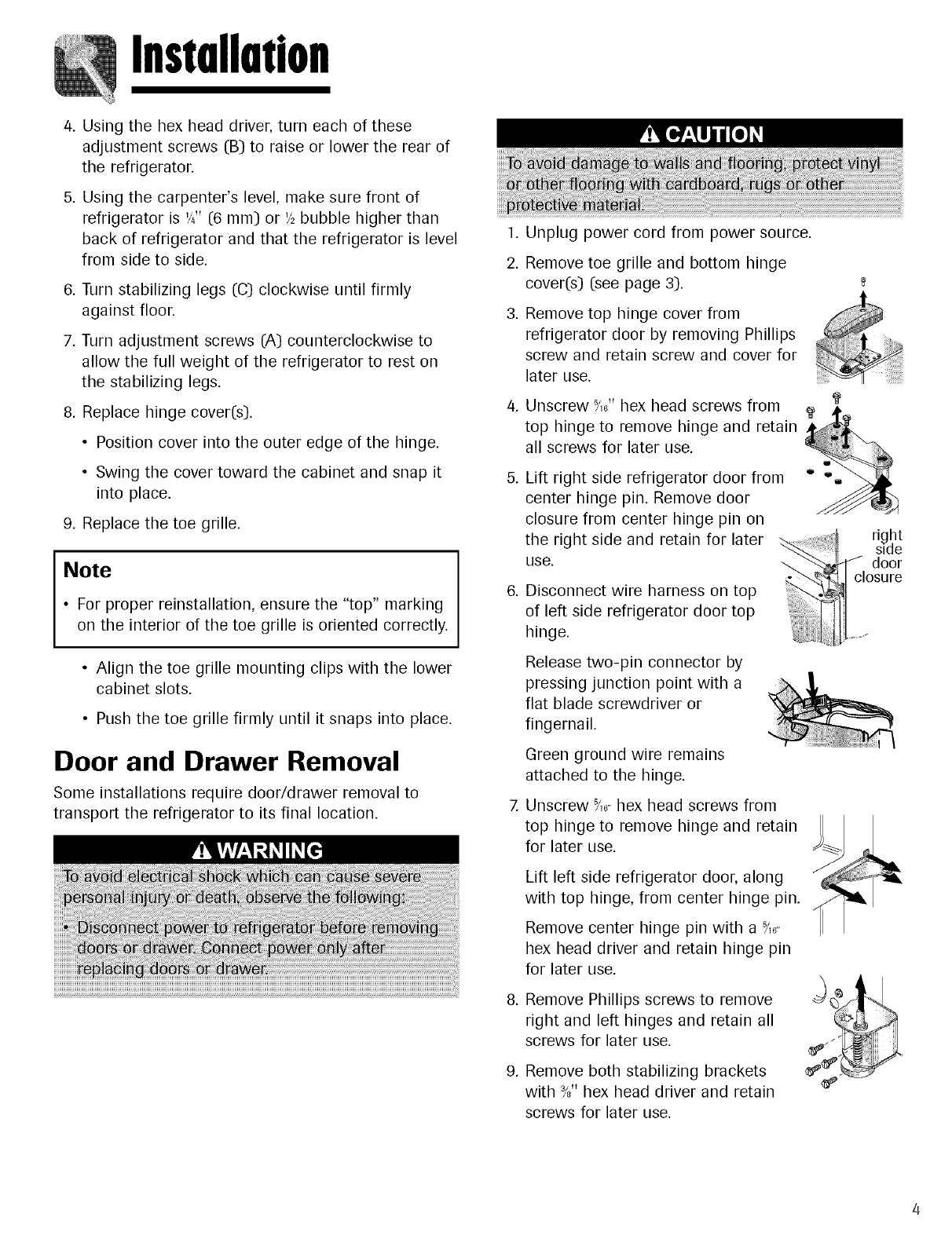 AMANA Bottom Mount Refrigerator Manual L0504341 AMANA Bottom Mount Refrigerator Owner's Manual, AMANA Bottom Mount Refrigerator installation guides