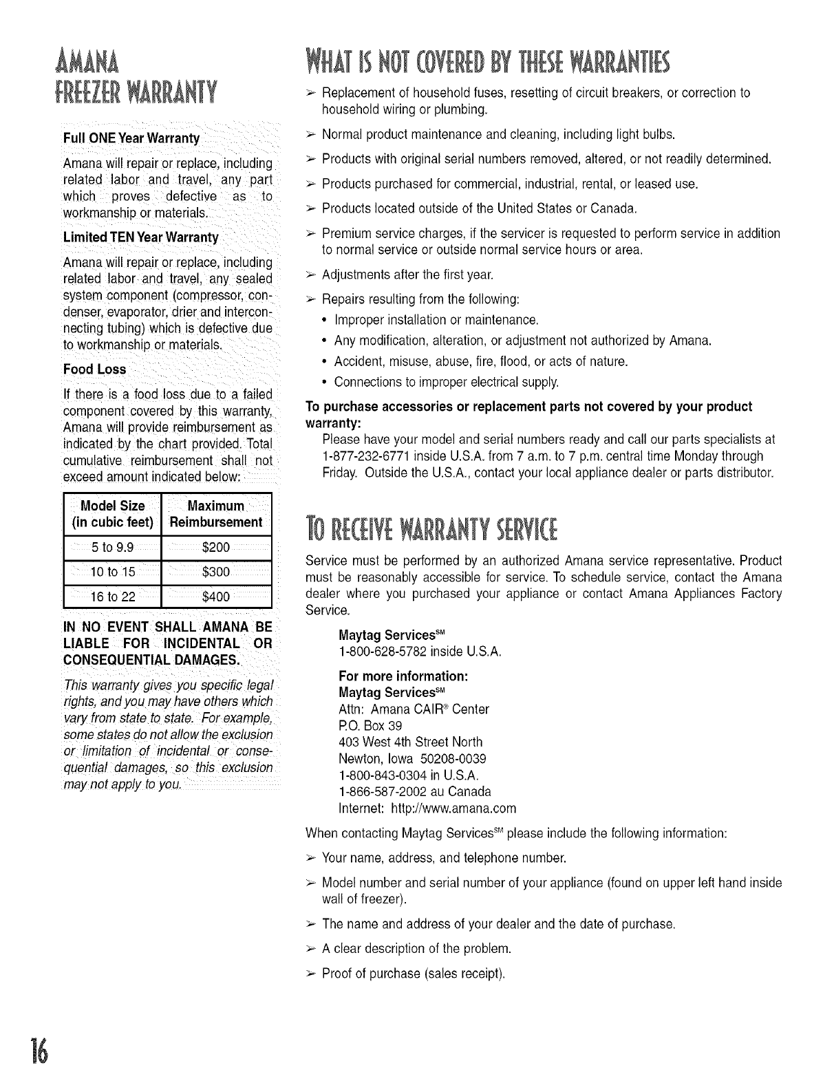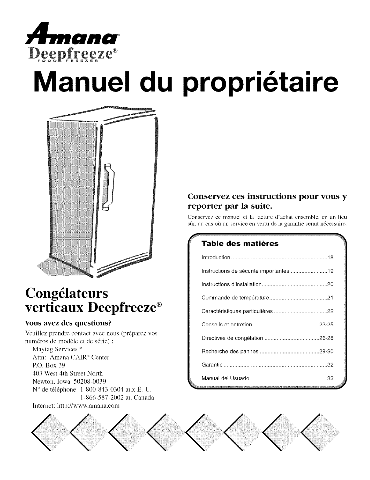 may also contact us on the web at www.amana.com.