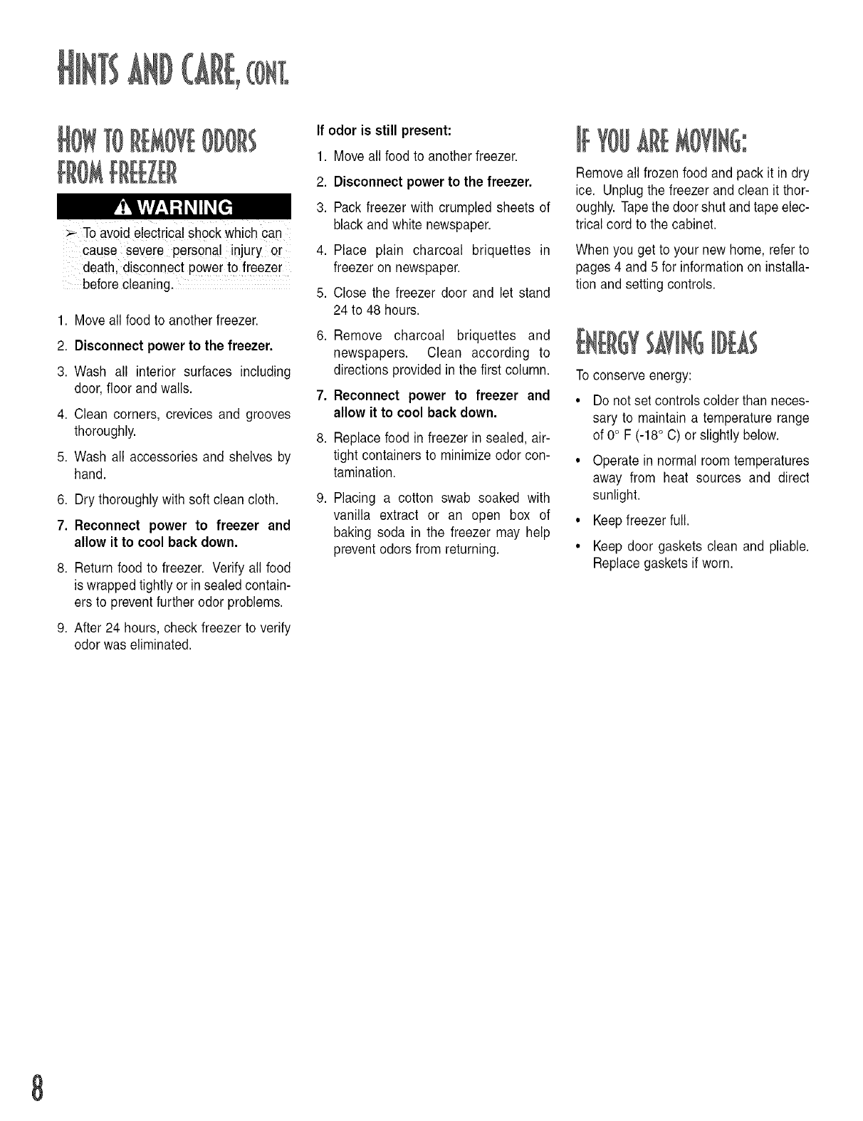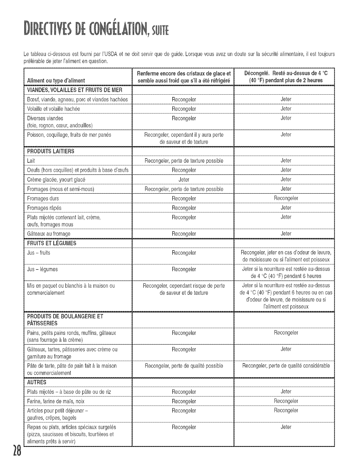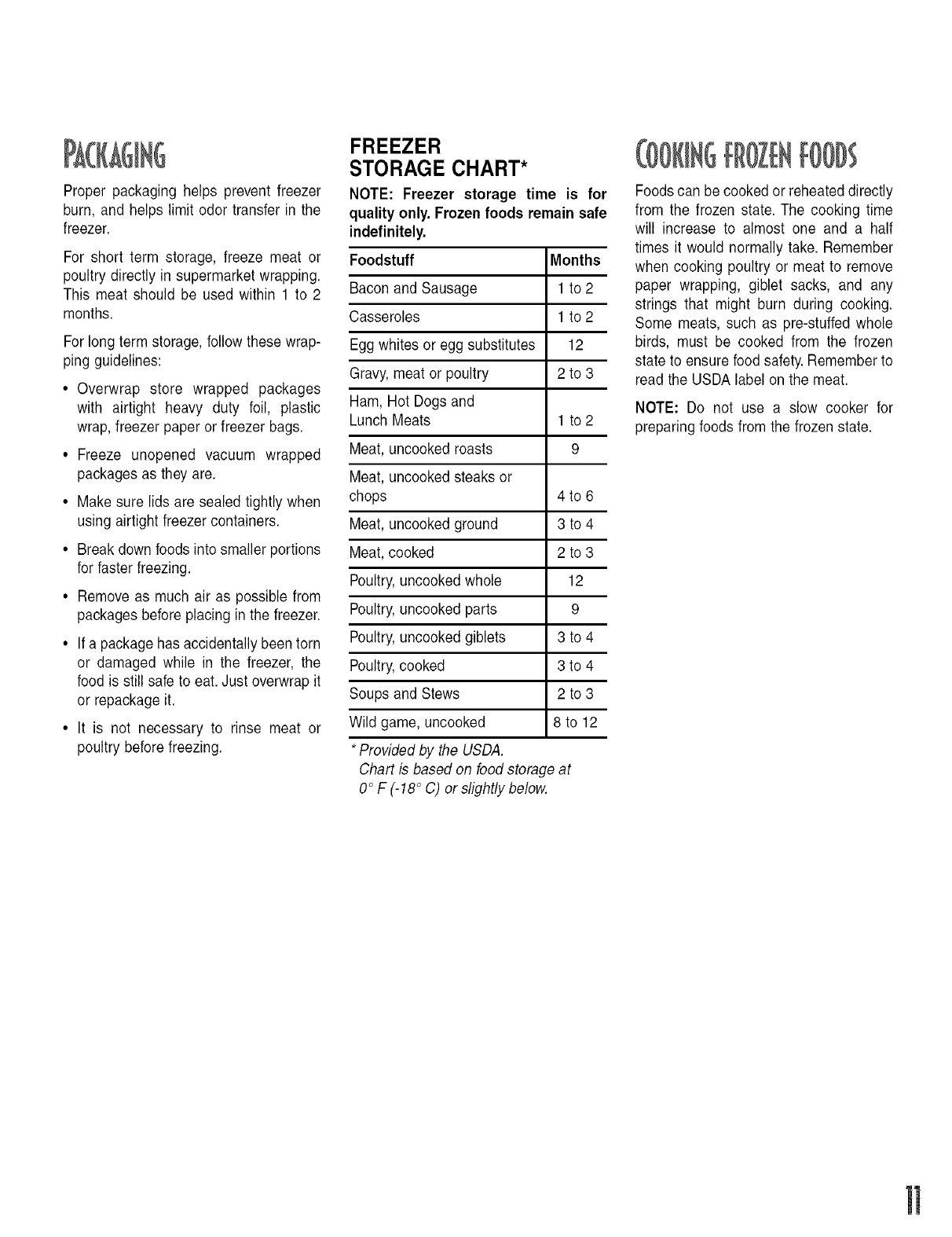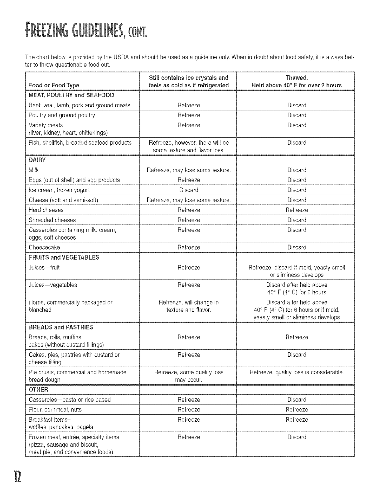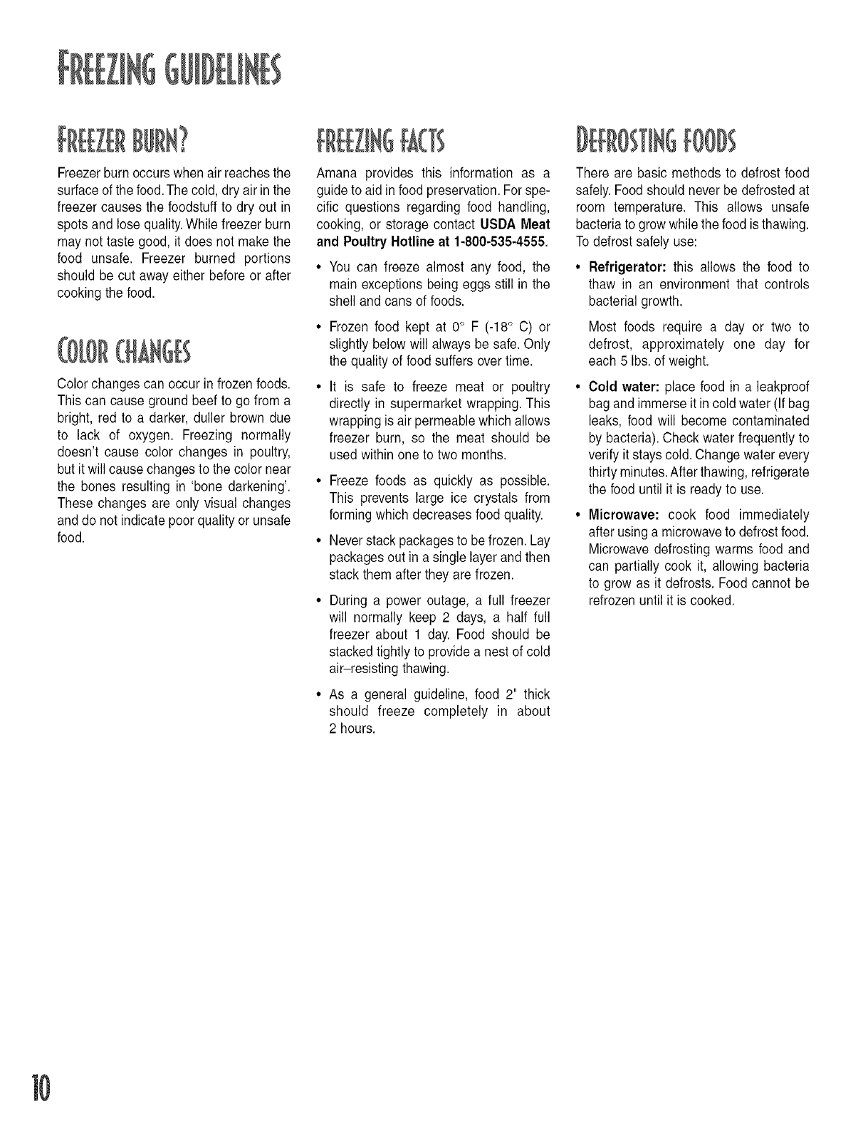 Freezing Guidelines ............................................. 10-12