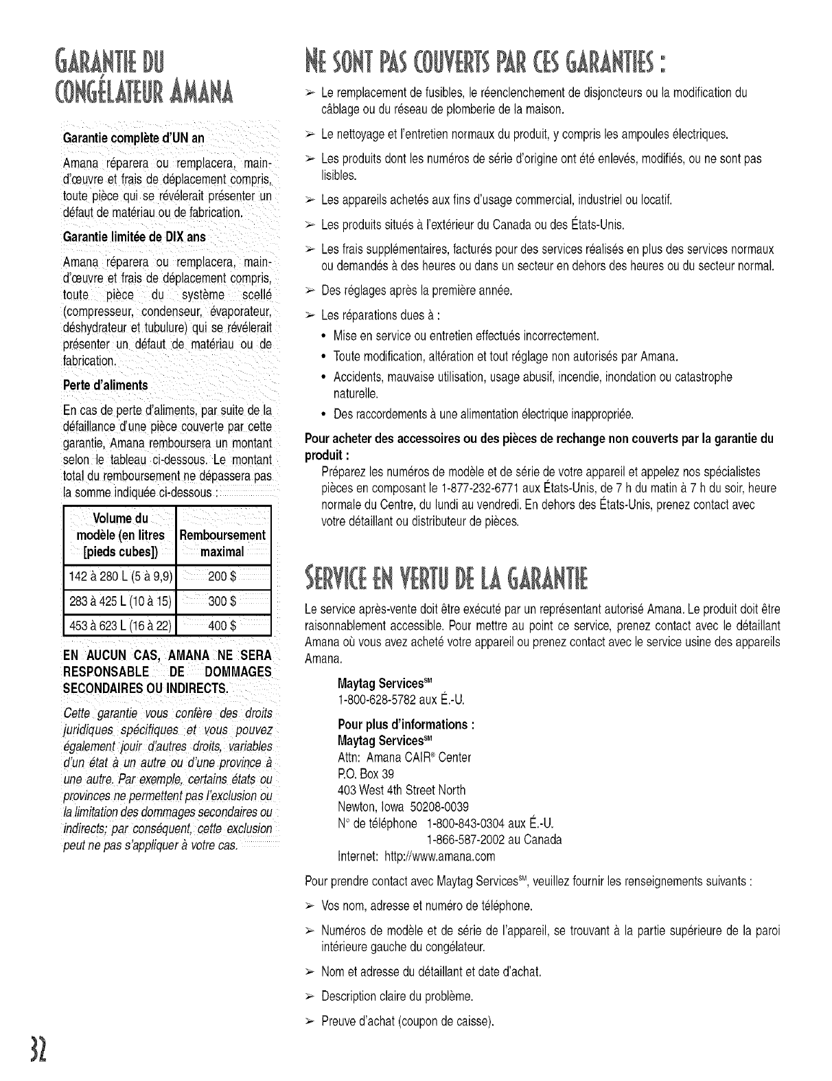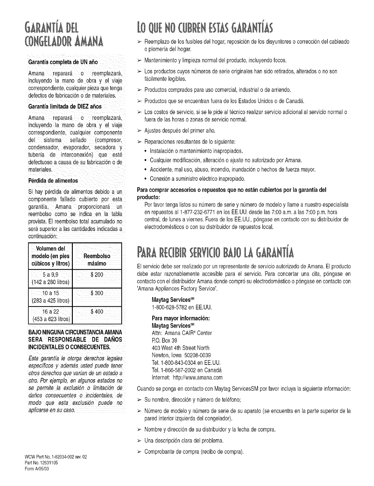 Warranty service must be performed by an authorized servicer. Amana also