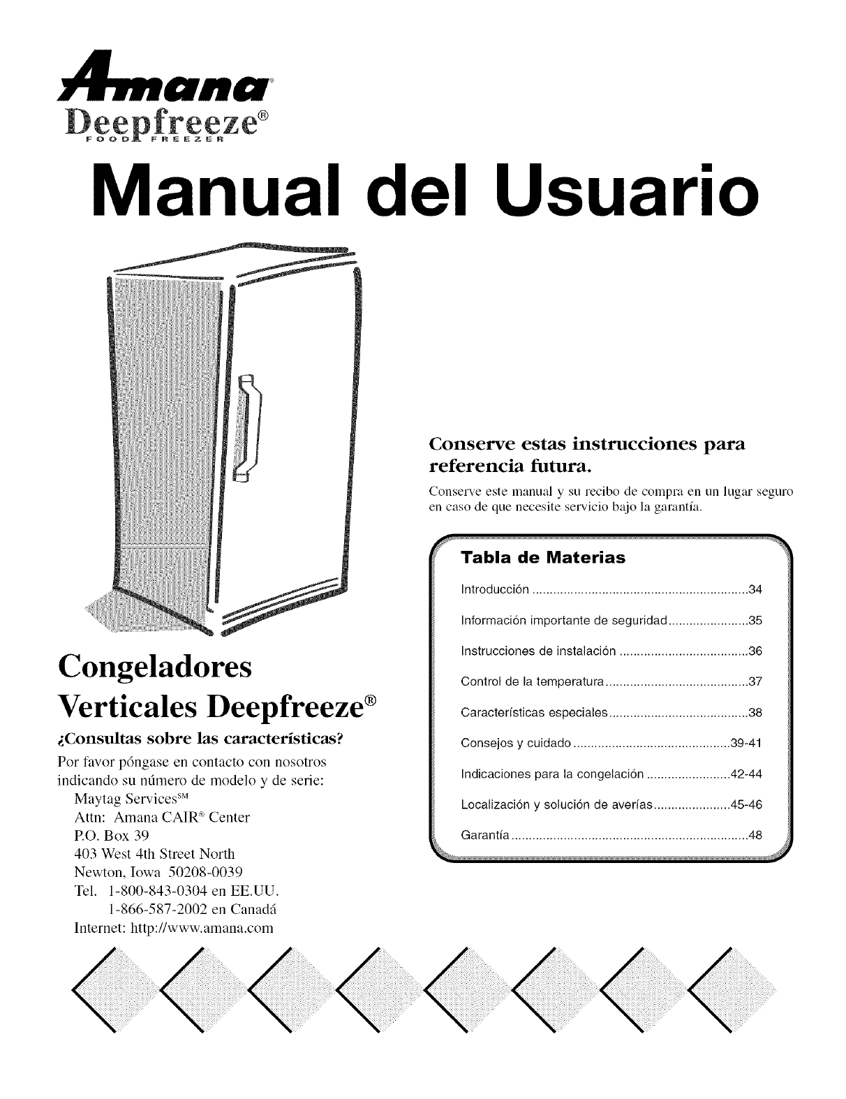AMANA Upright Freezer Manual L0523080 AMANA Upright Freezer Owner's Manual, AMANA Upright Freezer installation guides