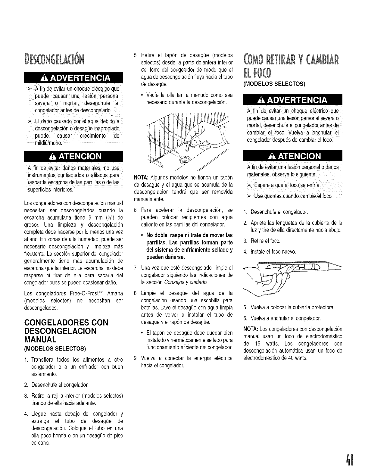 Bandejadedesag(_ededescongelaci6n En losmodelosFree-O-FrostTM, asegt_resedequela bandeja