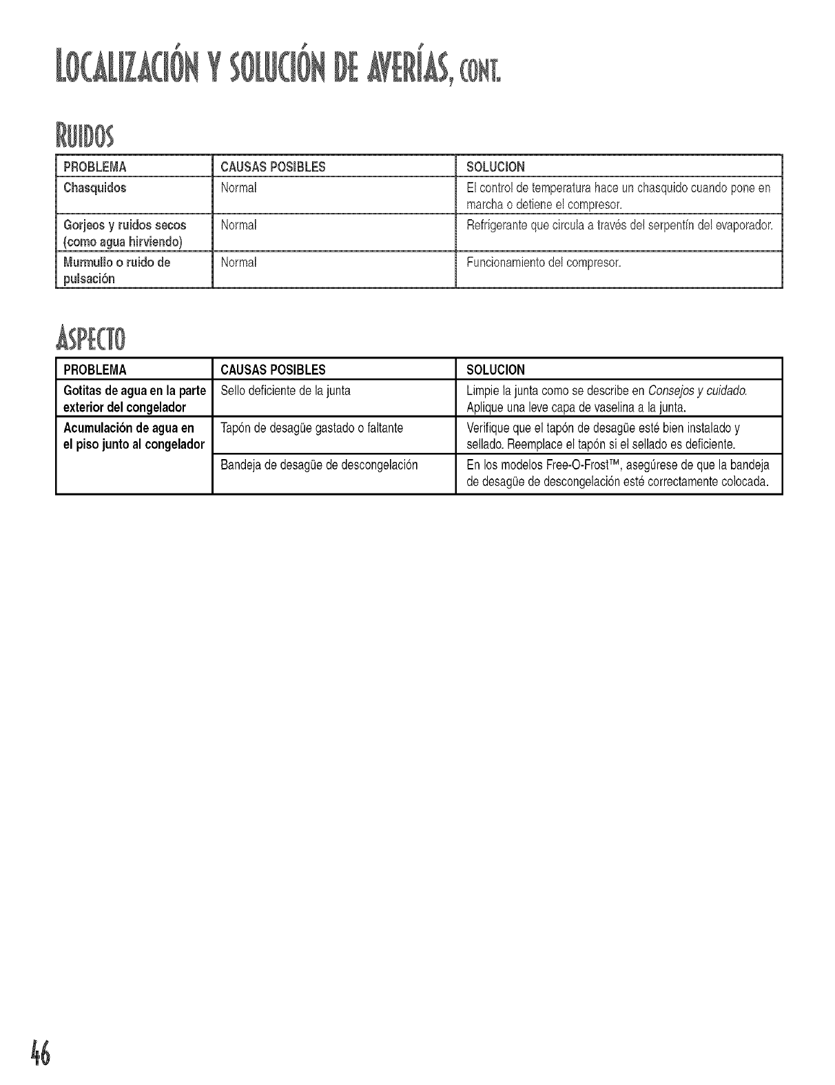 el piso junto al congelador sellado.Reemplaceel tapSnsi elselladoes deficiente.